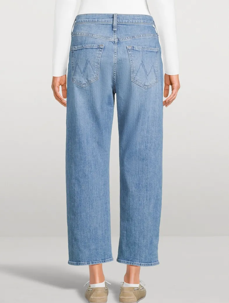 These straight-leg jeans have a zip fly and clean hems. They are designed to sit on the hips for a slightly dropped crotch and a slouchier fit. Made from denim with a touch of stretch with whiskering and fading at the knee.