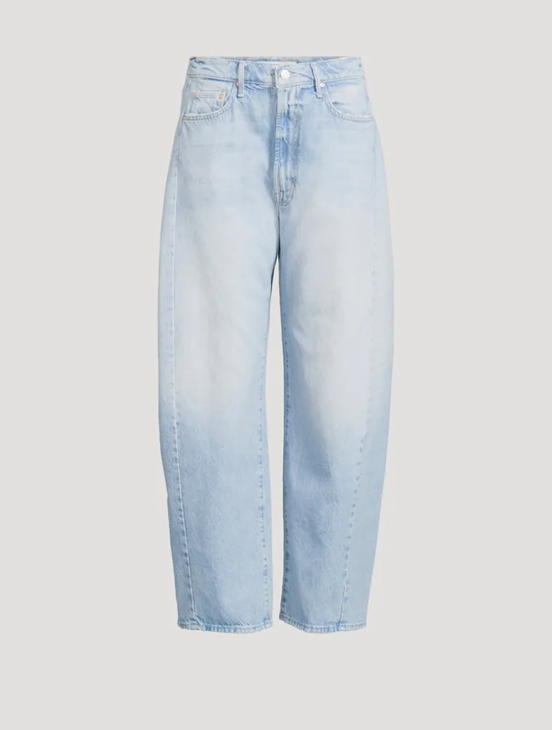 Super high-waisted pants with a full barrel leg and a clean hem. Made from semi-rigid SUPERIOR denim with subtle fading and whiskering throughout.