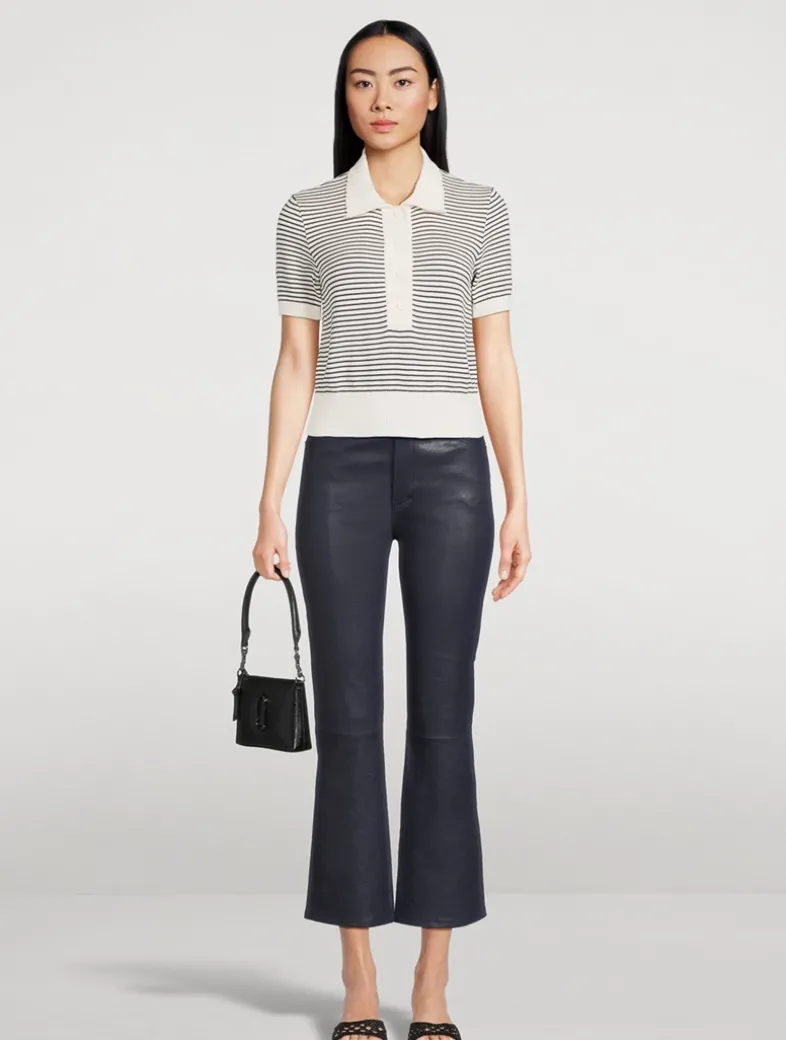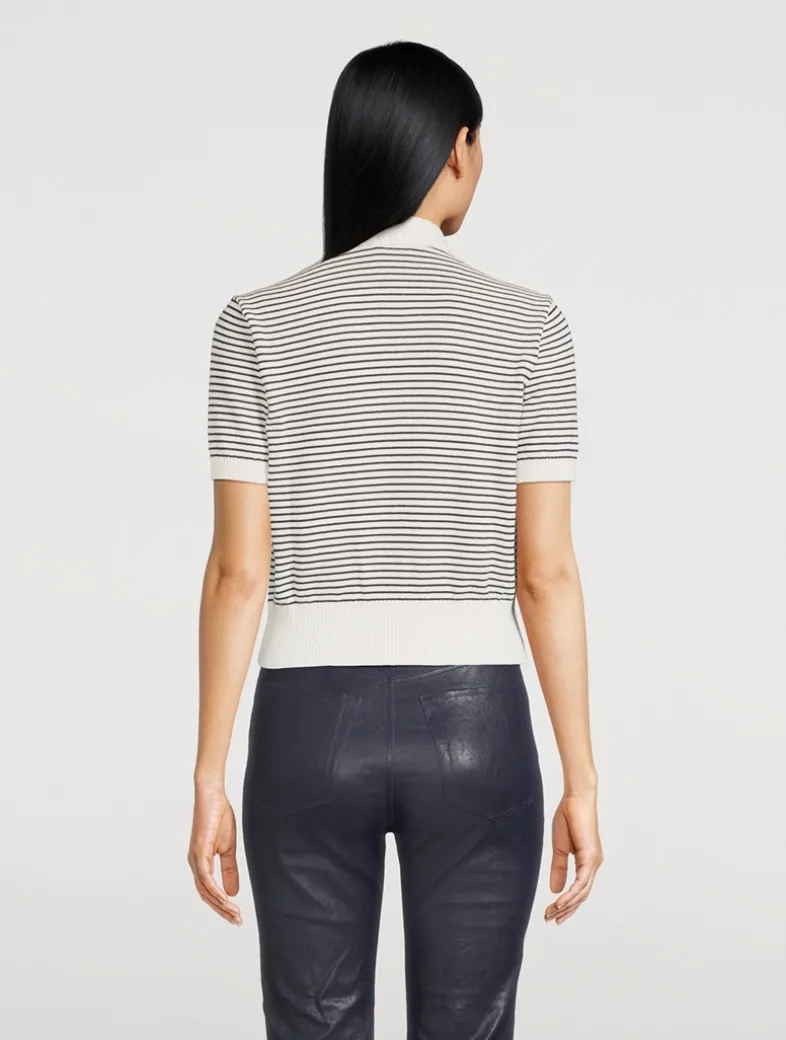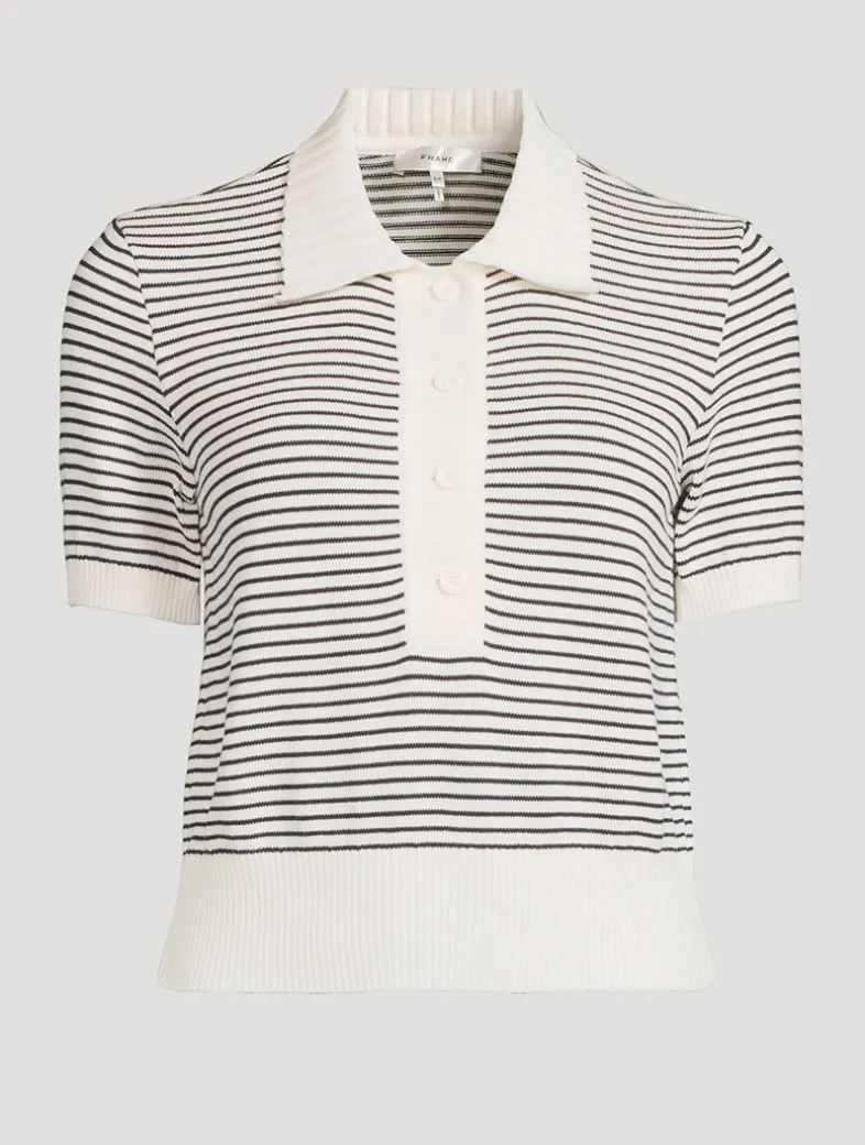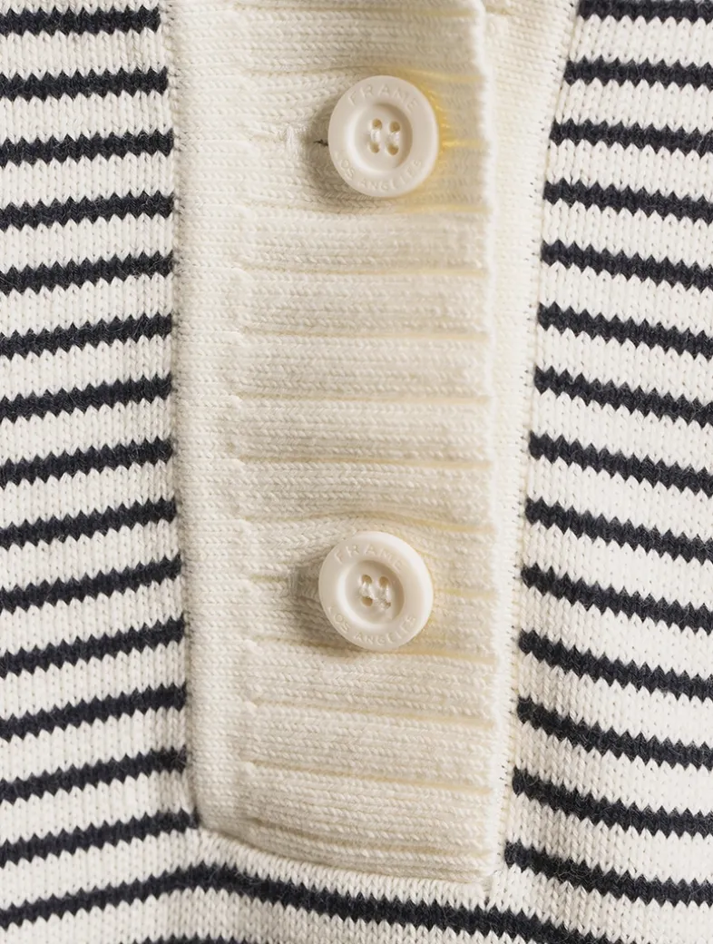 The Graduate Polo in cotton yarn features buttons, stripes, a solid collar and placket, and ribbed trim for a crisp, fitted shape.