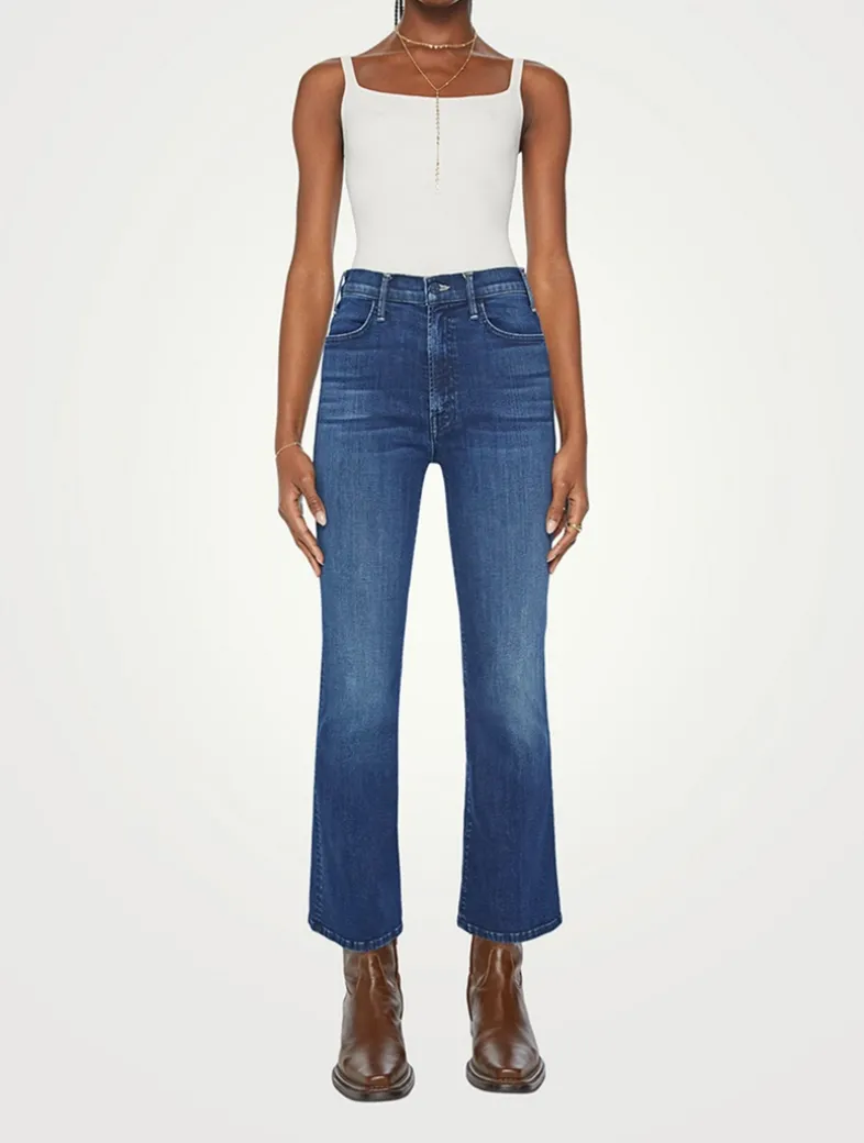 Cut with a flared-leg silhouette, these high-waisted jeans are detailed with an ankle-length inseam and clean hem. Cut from denim with a touch of stretch, these staple jeans are finished with subtle whiskering and fading throughout.