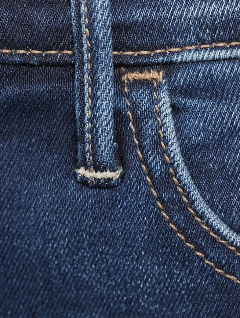 This high-rise flare has an ankle-length inseam and a clean hem. Made from stretch denim with whiskering and fading at the knees.