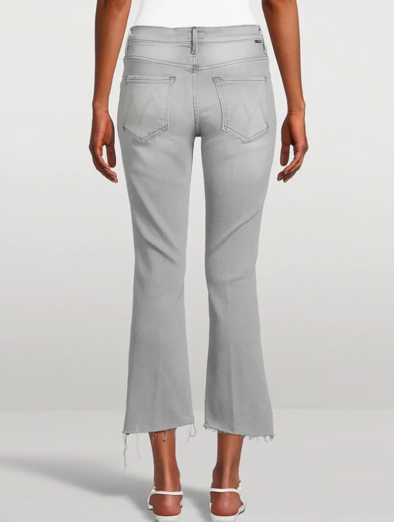 This iconic high-waisted bootcut hits at the ankle with a frayed step hem. Cut from soft stretch denim with subtle fading and whiskering.