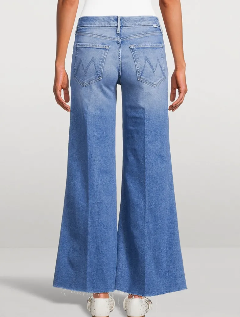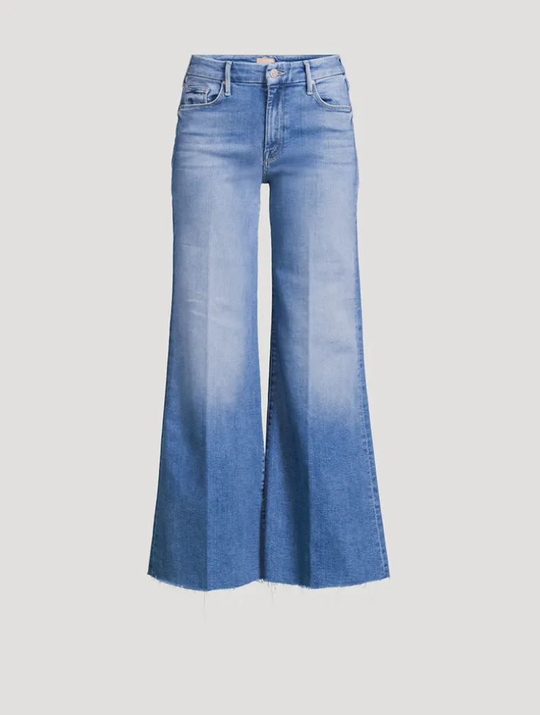 Made from stretch denim, these high-waisted jeans have a wide leg finished with a frayed hem.