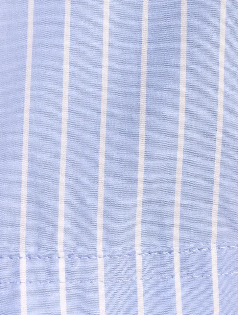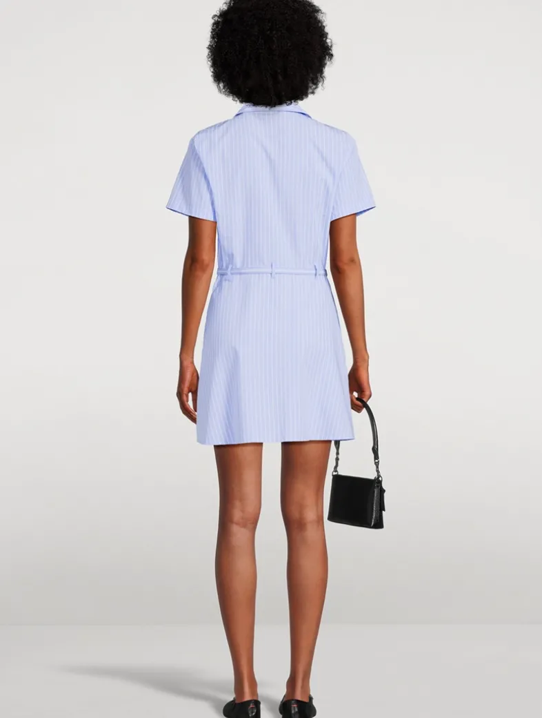 Tailored like a shirt, styled like a mini. The striped Safari Dress features a button front, chest pockets, and a matching removable belt to define the waist. A crisp cotton poplin construction keeps it light and polished.