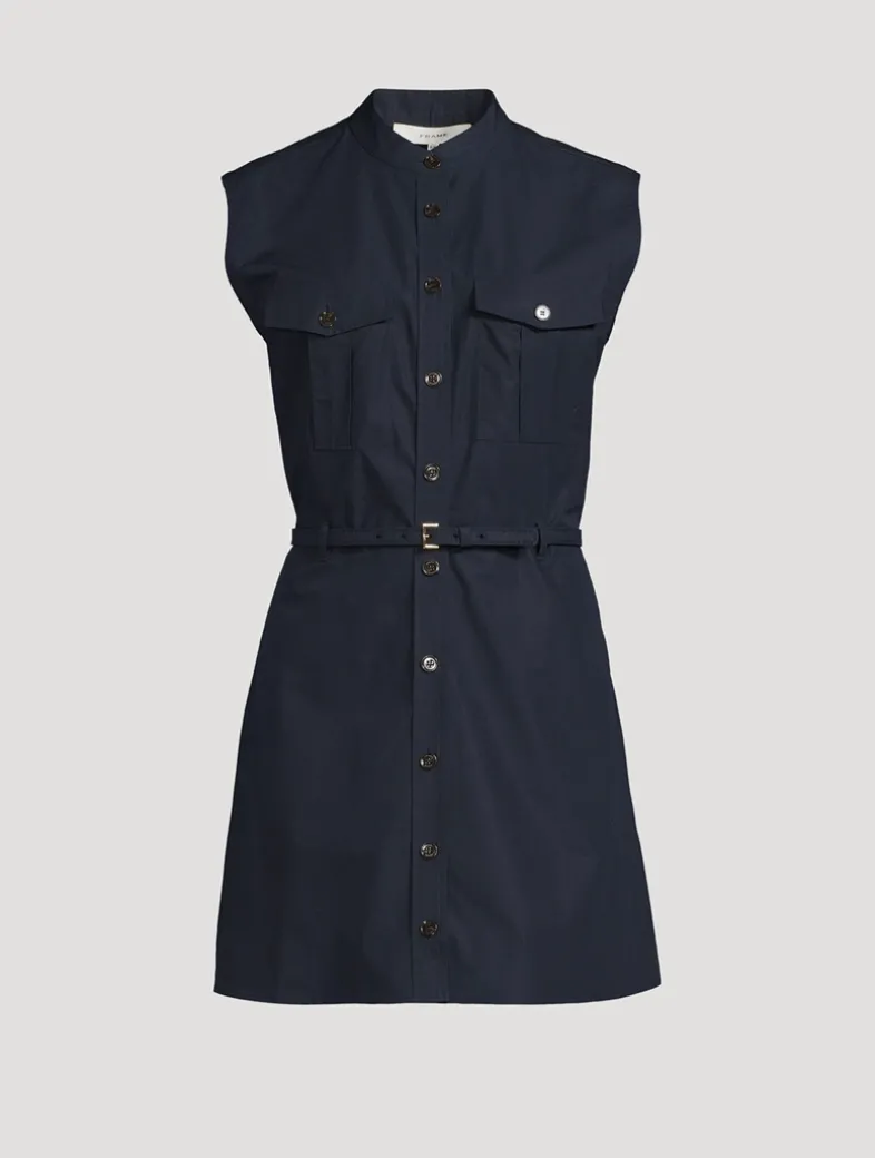 A timeless take on utility dressing. Crafted from crisp cotton, this safari dress blends structure with ease—polished yet effortless. A stand collar, subtle pockets, and a coordinating belt shape a silhouette that moves with you, no matter the destination.