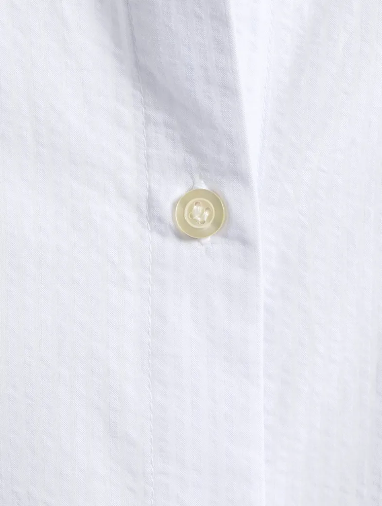 This wardrobe essential is equal parts timeless and modern—an instant classic you’ll reach for season after season. It features exaggerated cuffs and a relaxed, slightly boxy silhouette. Crafted from 100% cotton seersucker, with a distinctive puckered texture.