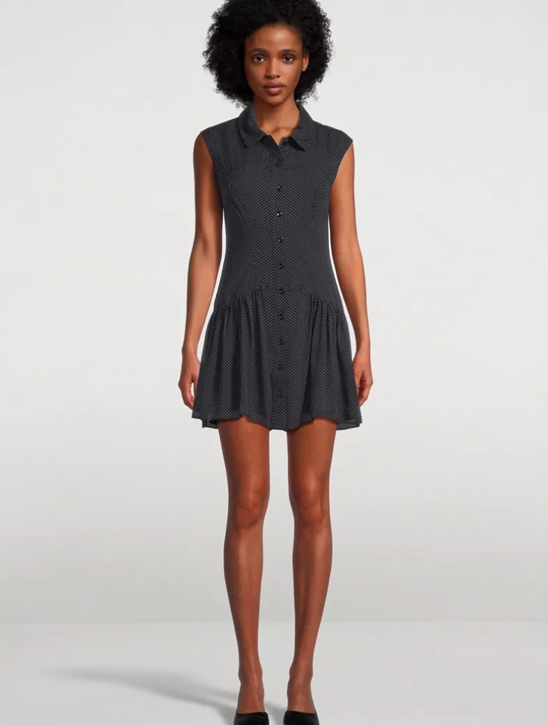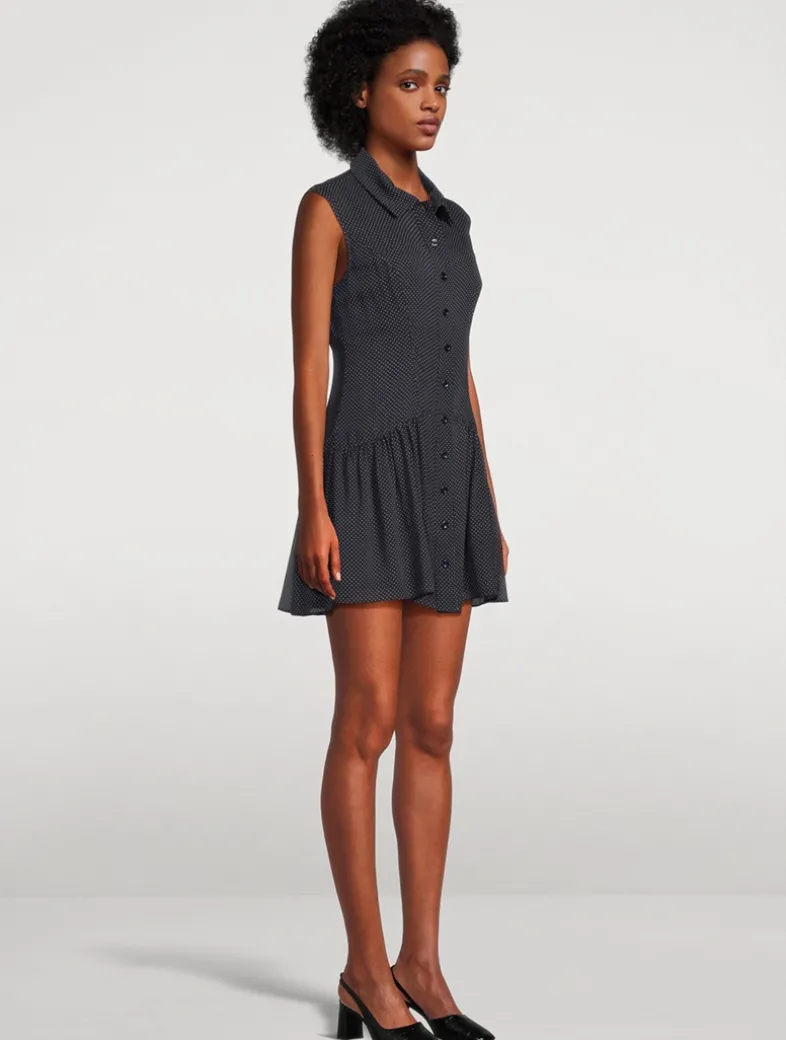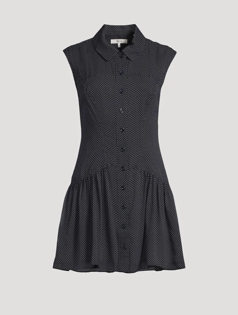 Effortless by design, this sleeveless button-front dress is cut from pure silk with a polka dot print, featuring a fitted bodice and softly flared hem for a light, fluid, and easy-to-wear silhouette.