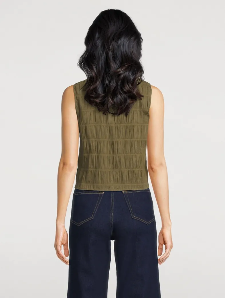 For a look that feels effortlessly, instantly pulled together, reach for this sleeveless top, made from crisp cotton fabric with a hint of stretch. It feels both easy and elevated thanks to a round collar, smocking, and a relaxed fit.