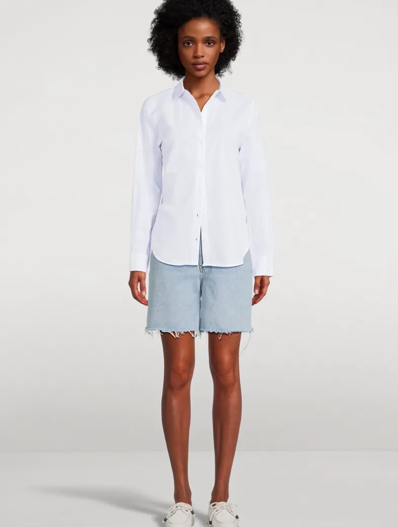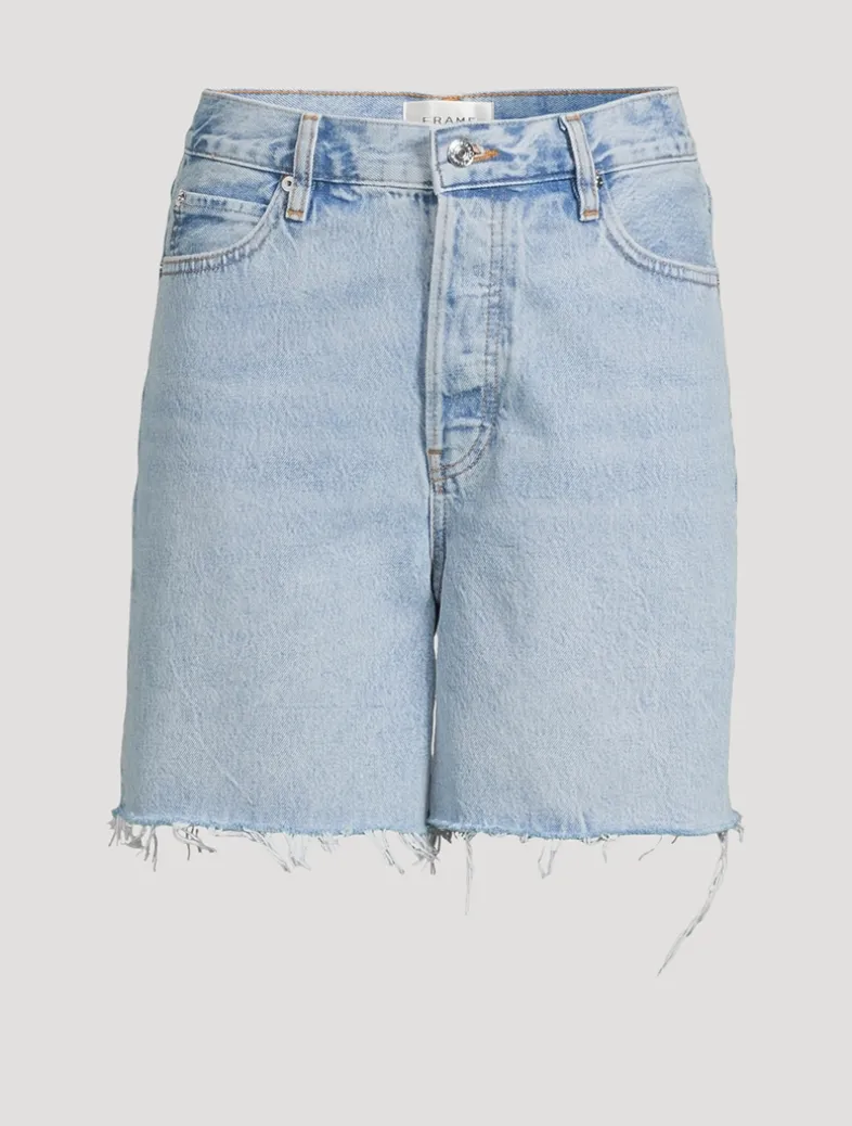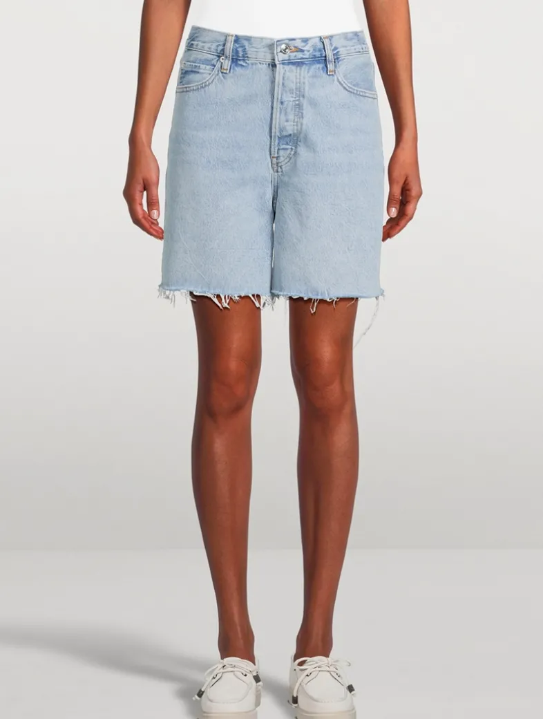This rigid short is crafted from 100% sustainable cotton with a timeless, old-school fit: relaxed high-rise waist and raw, frayed hem that reaches around the middle of the thigh.