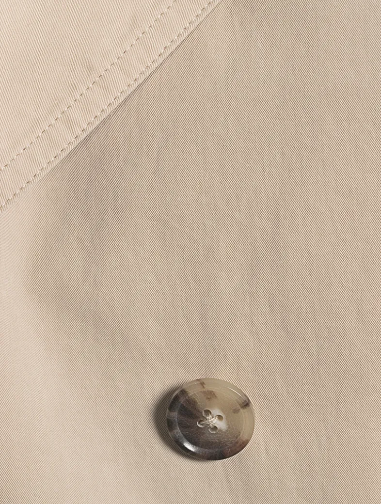 A cropped take on the classic—lightweight, tailored, and finished with a button-and-belt closure. In crisp cotton, it’s the kind of layer that pulls you together in one clean move. Quietly polished, effortlessly thrown on.