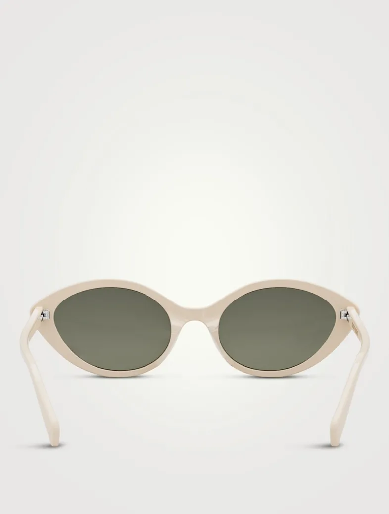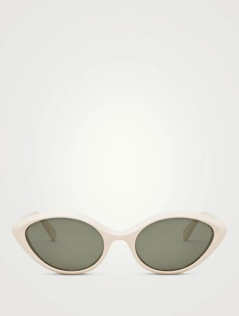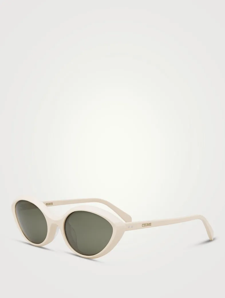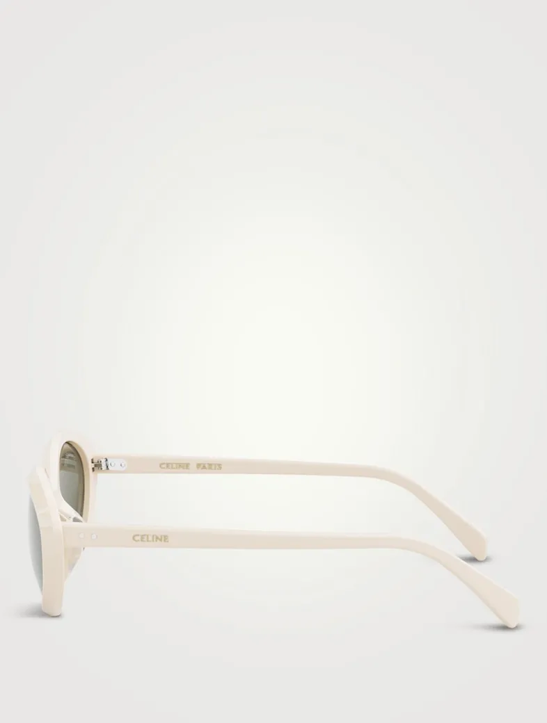Featuring a thin cat eye frame with beveled edges, these sleek sunglasses are finished with lasered Celine logo lettering at both temples.
