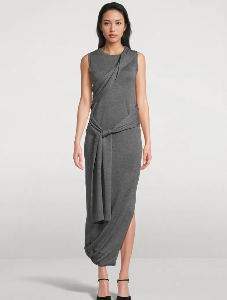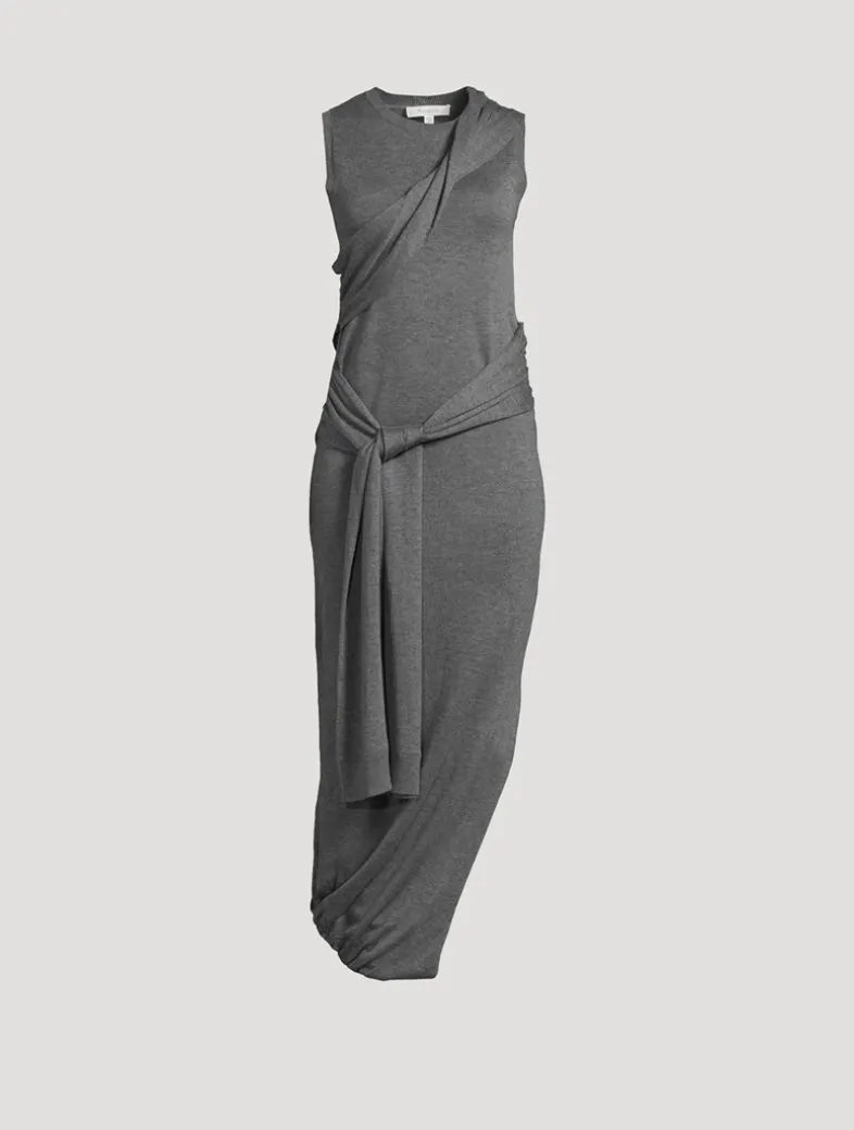This curve-skimming midi is crafted from a luxe wool blend and features ties that wrap around the body and waist.