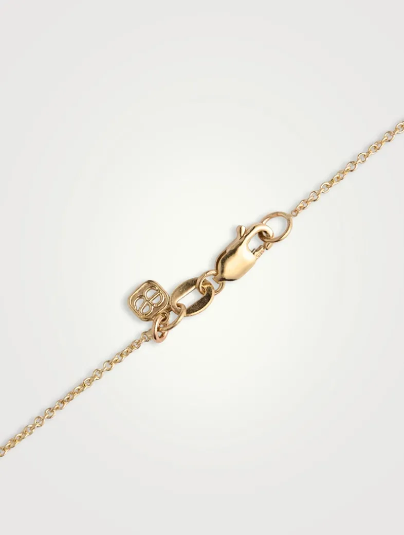 This 14k yellow gold open wing ladybug necklace, adorned with rubies and diamonds, features a fine 14k gold cable chain that is 16