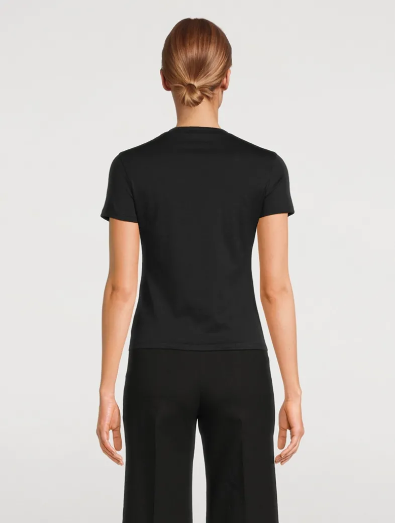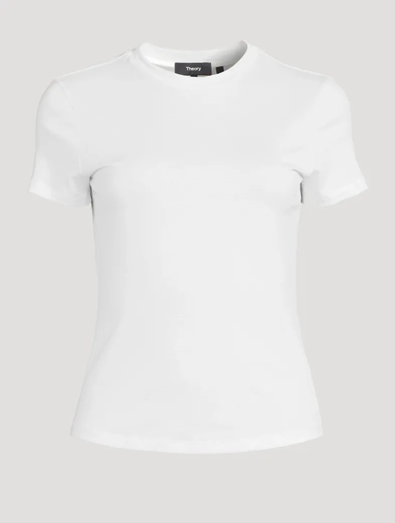 This fitted T-shirt is designed with a heathered finish and subtle texture. Crafted in organic cotton, the tee is finished with a bound crewneck and double-needle topstitching at the sleeves and hem.