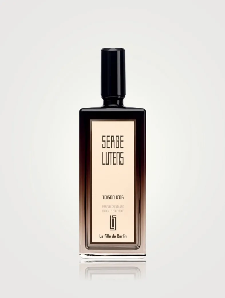 The hair Perfume La fille de Berlin, “Toison d’or”, to create an entrancing halo of scent. In movement the scent diffuses, subtly perfuming the hair with fragrance for an alluring and bewitching trail. The final touch of a new perfume ritual. To be enhanced with the Confit de parfum for an even more intimate impression, and the Eau de parfum to intensify your olfactory trail. For an unsurpassed sensuality and trail, follow Serge Lutens perfume ritual.
