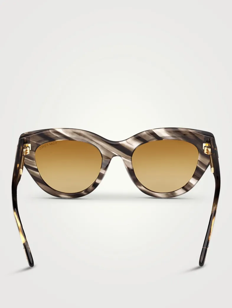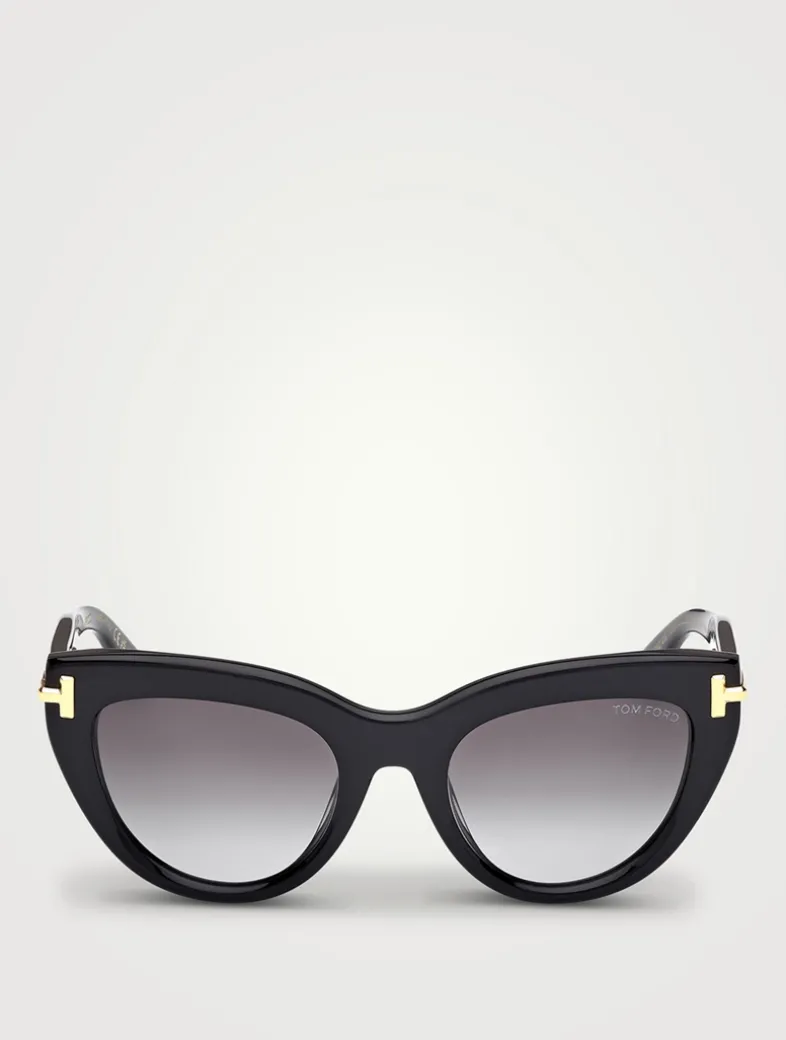 From the Icon collection. Featuring an upswept cat-eye shape, these designer sunglasses have bold metal T temples.