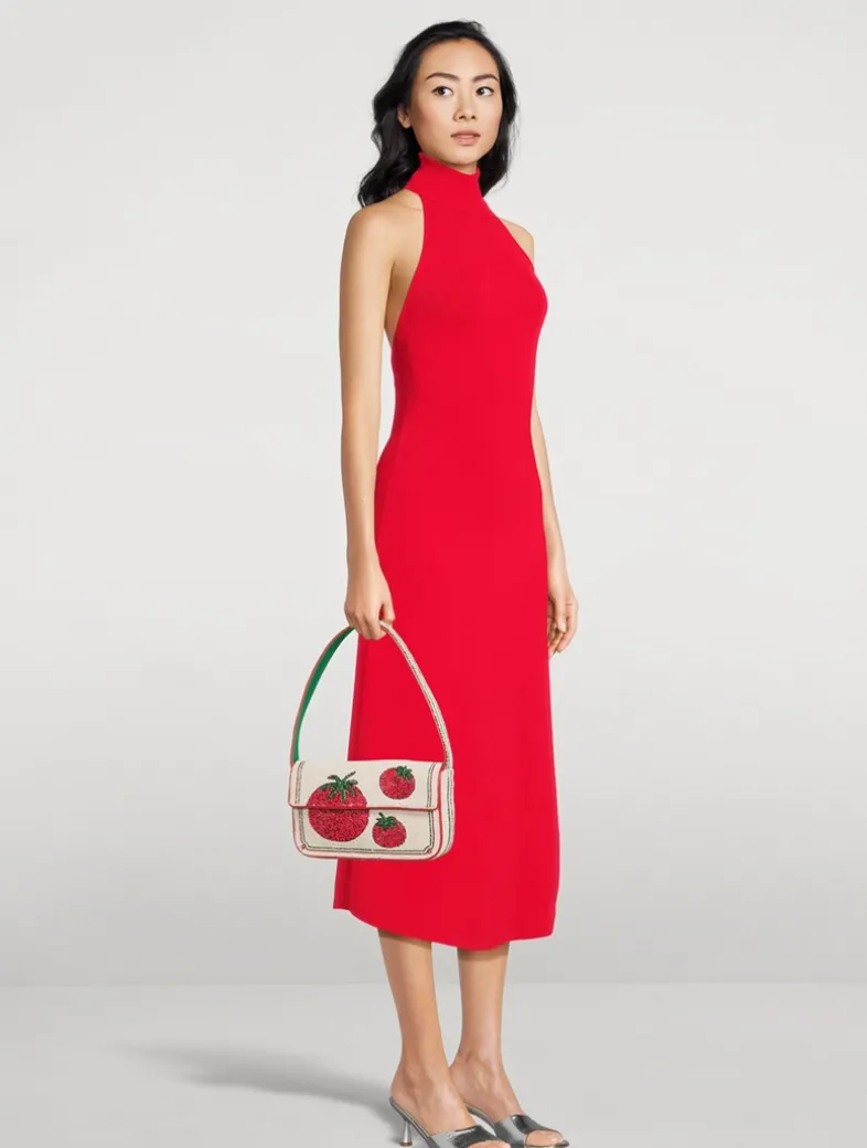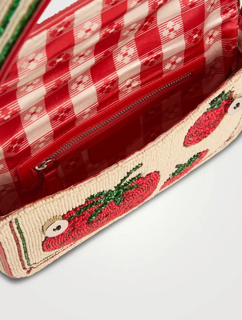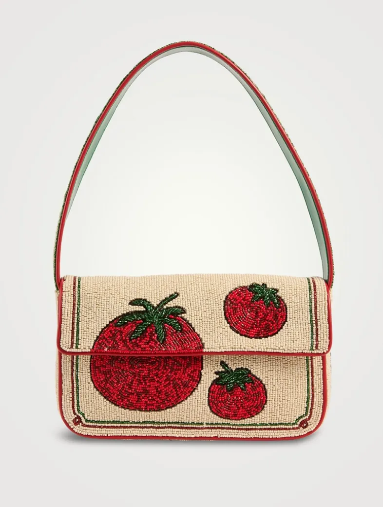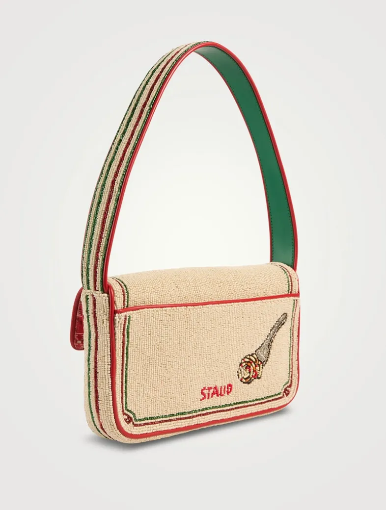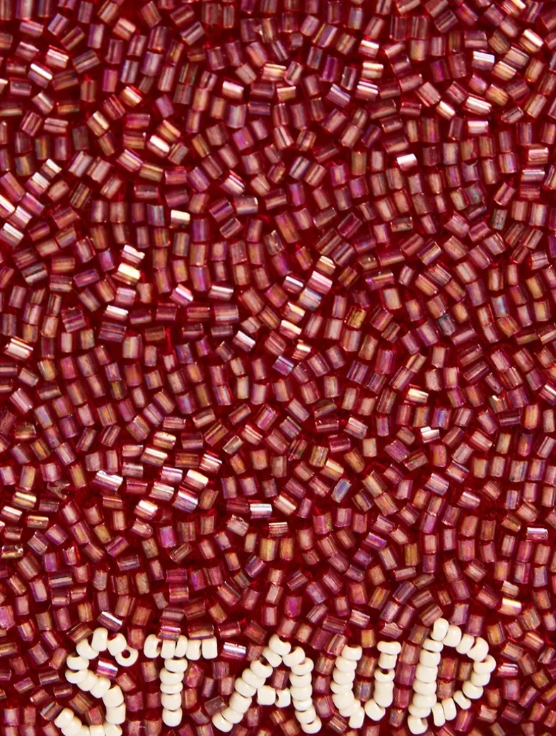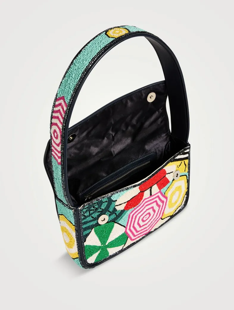 The Tommy is a hand-beaded shoulder bag with vegan leather piping. This style features a single flap closure, inner zip pouch, and a magnetic pocket on the back.