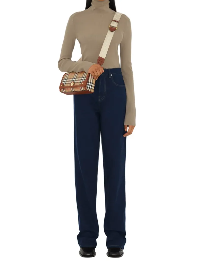 An archive-inspired crossbody bag made in Italy from calf leather and Burberry Check with a cotton lining. Carry by the top handle, across the body or wear on the shoulder using the detachable strap.