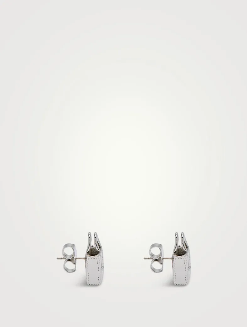 One of Marc Jacobs’ most recognizable styles, the iconic tote bag, is reimagined into delicate stud earrings.