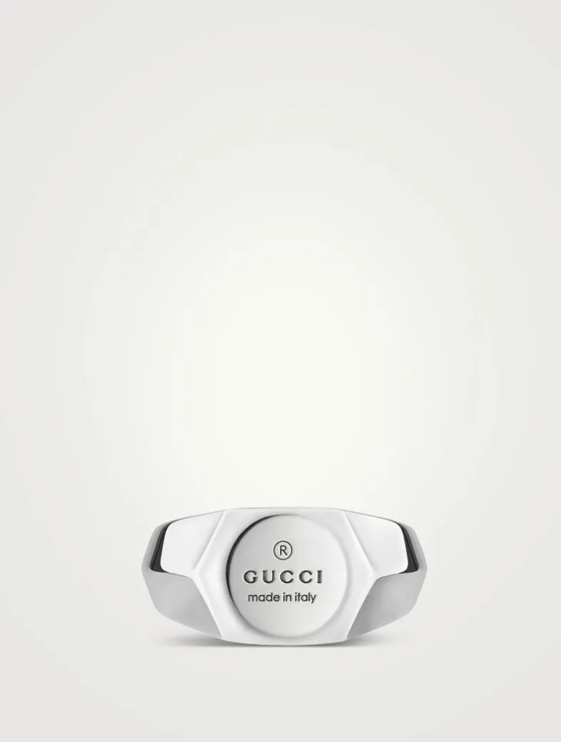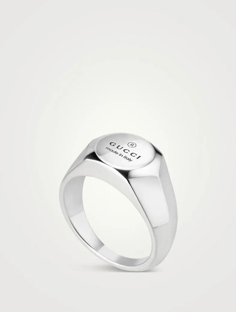 Crafted from 925 sterling silver, the Gucci trademark engraving defines this signet ring, a jewellery piece reflecting the House’s narrative.