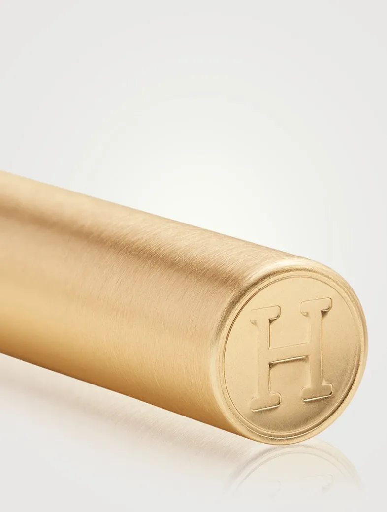 The Object: Designed by Pierre Hardy, the pencil is inspired by the obstacle bars used in show-jumping competitions, with its black and white lacquer and brushed metal. Like the coloured pencils we remember from childhood, it is made of wood—sourced from PEFC-certified forests—and has a built-in smudger. Its brushed metal cap is adorned with the House’s emblematic