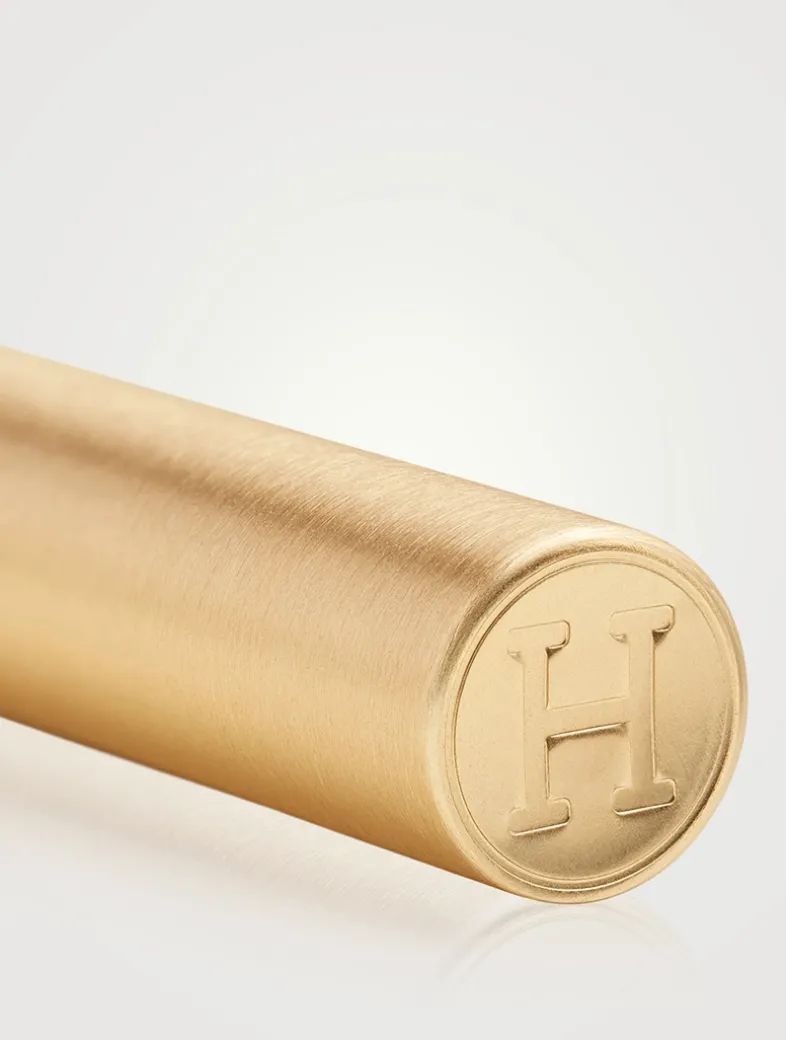 The Object: Designed by Pierre Hardy, the pencil is inspired by the obstacle bars used in show-jumping competitions, with its black and white lacquer and brushed metal. Like the coloured pencils we remember from childhood, it is made of wood—sourced from PEFC-certified forests—and has a built-in smudger. Its brushed metal cap is adorned with the house’s emblematic