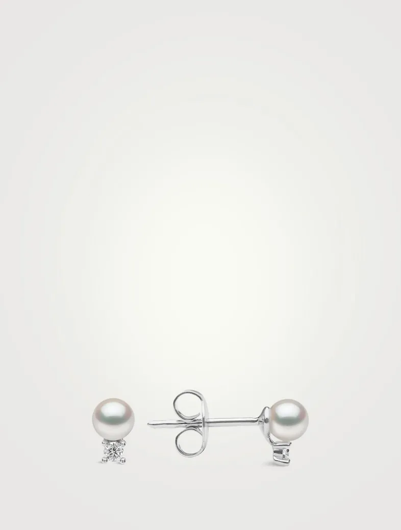 Trend 18K White Gold Freshwater Pearl And Diamond Petite Stud Earrings