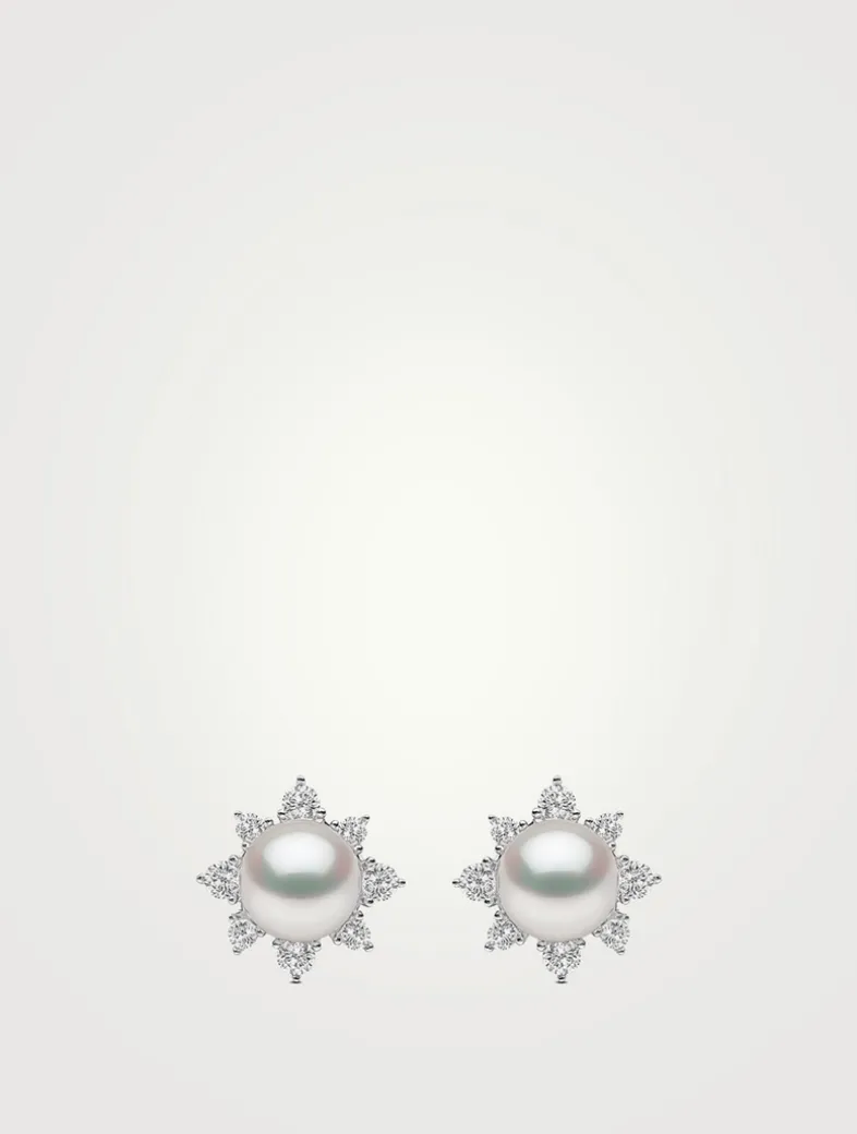 Putting style at the forefront of each design, the Trend collection is designed for the modern woman. These 18k gold earrings feature high quality 6-6.5mm pearls, surrounded by scintillating diamonds. A contemporary twist on a classic design, these earrings will elevate any outfit.