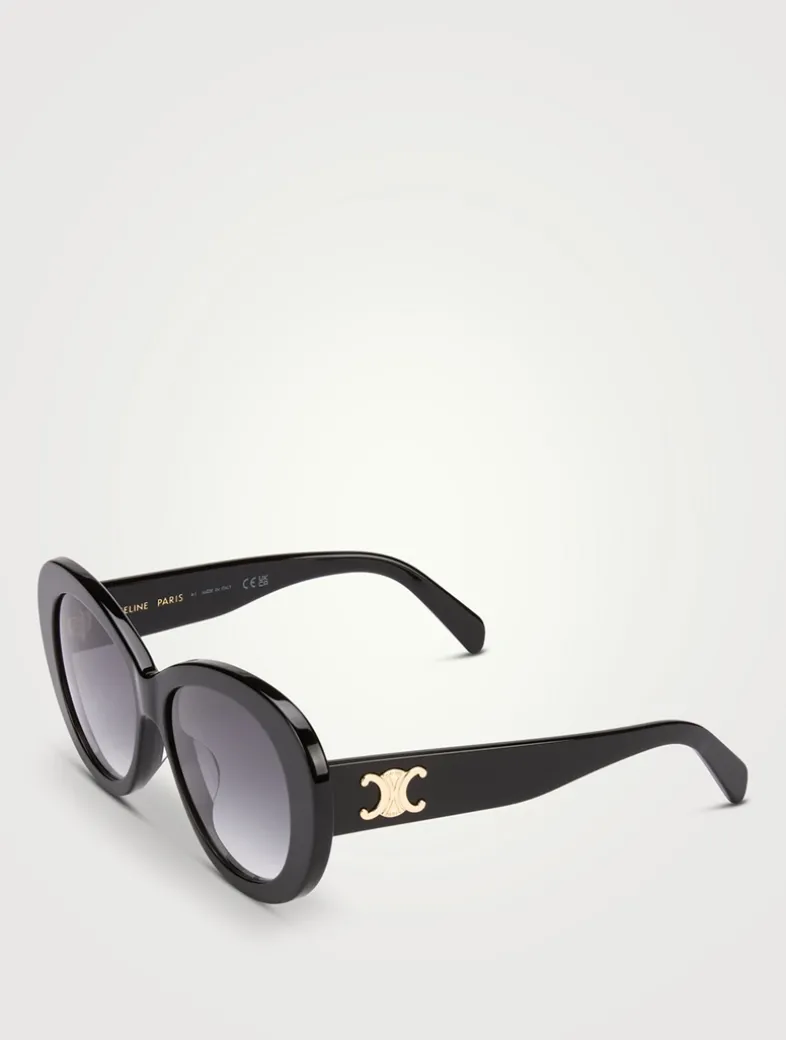 Featuring a fun butterfly shape, these glossy acetate sunglasses showcase the Triomphe signature in relief on both temples.