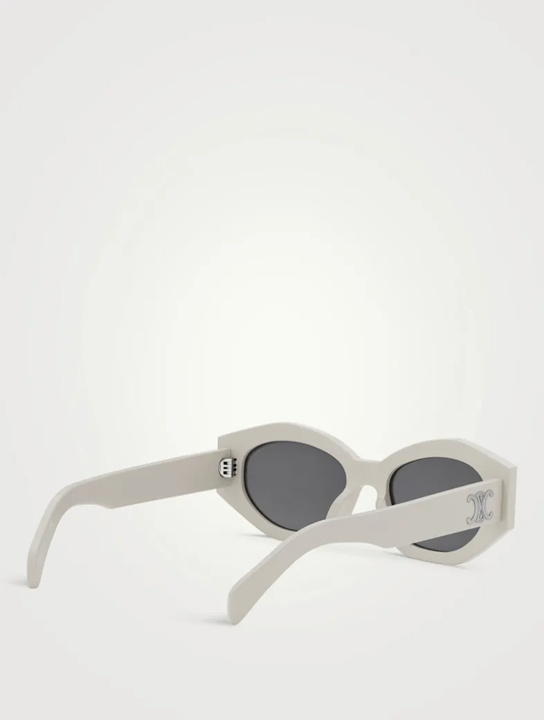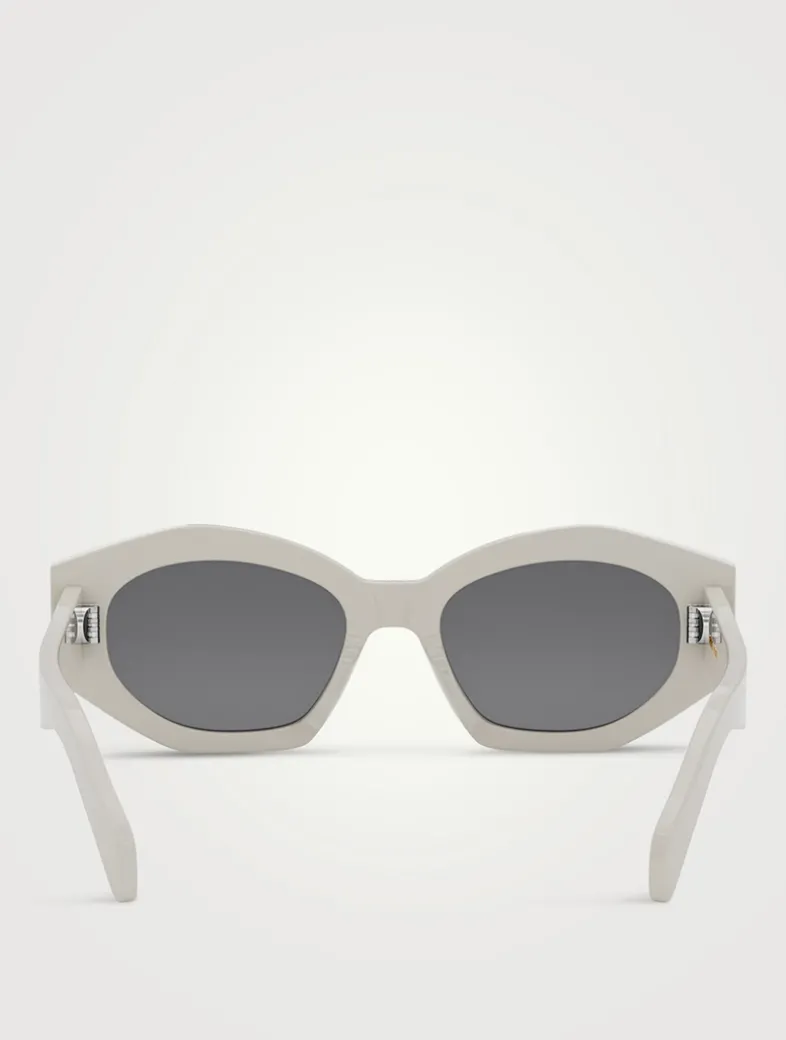 Designed with an angular oval lens shape, these bold acetate sunglasses are finished with the Maison’s recurring Maillon Triomphe emblem at the temples.