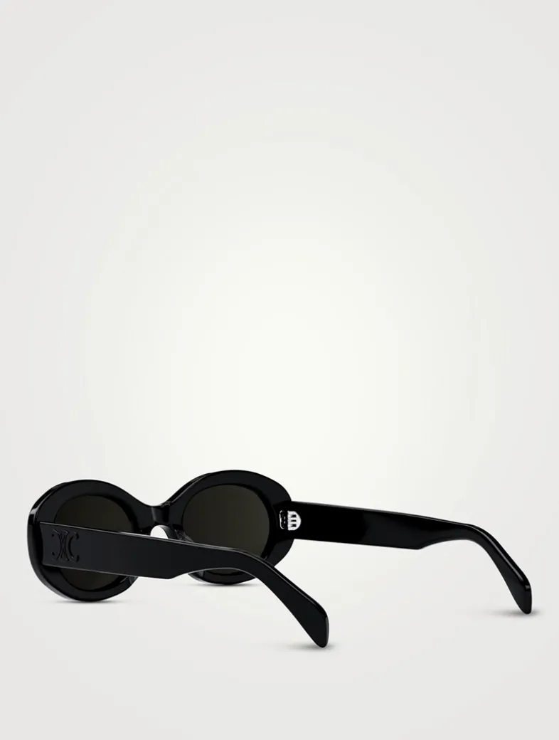Flaunting an oval shape, these sunglasses are crafted of acetate adorned with a tonal version of CELINE’s signature Triomphe design at the temples.