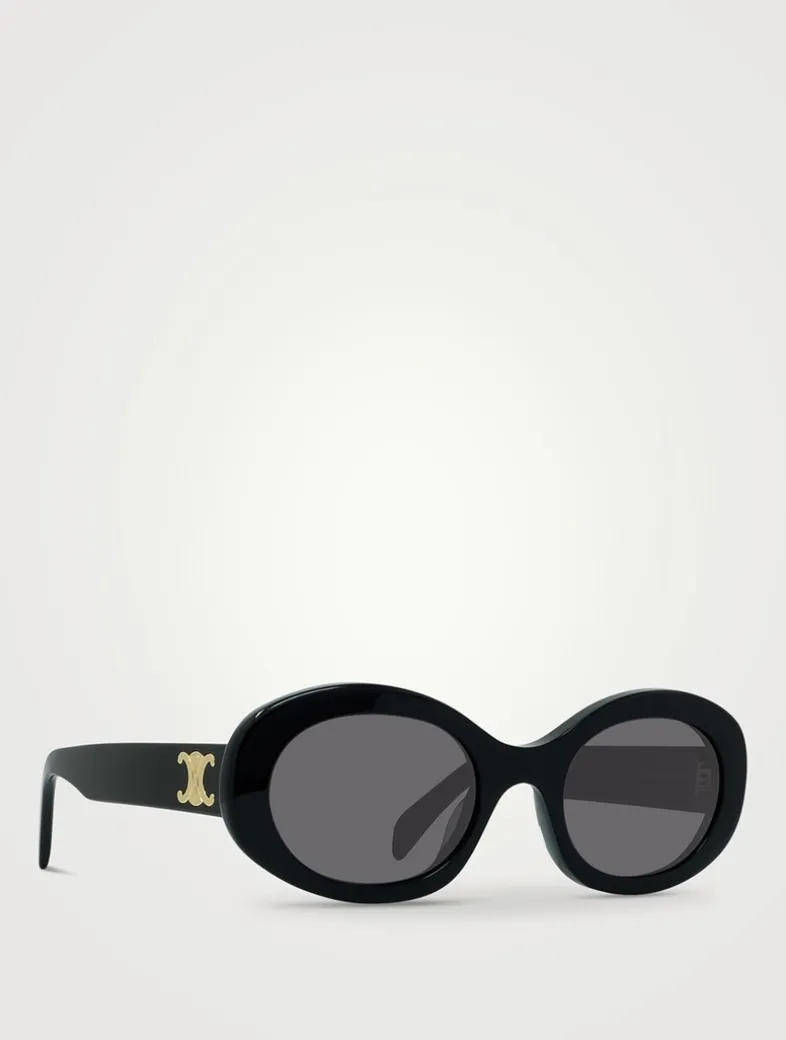 Defined by their retro-inspired, oval shape these bold acetate sunglasses are finished with the Maison’s recurring Maillon Triomphe emblem at the temples.