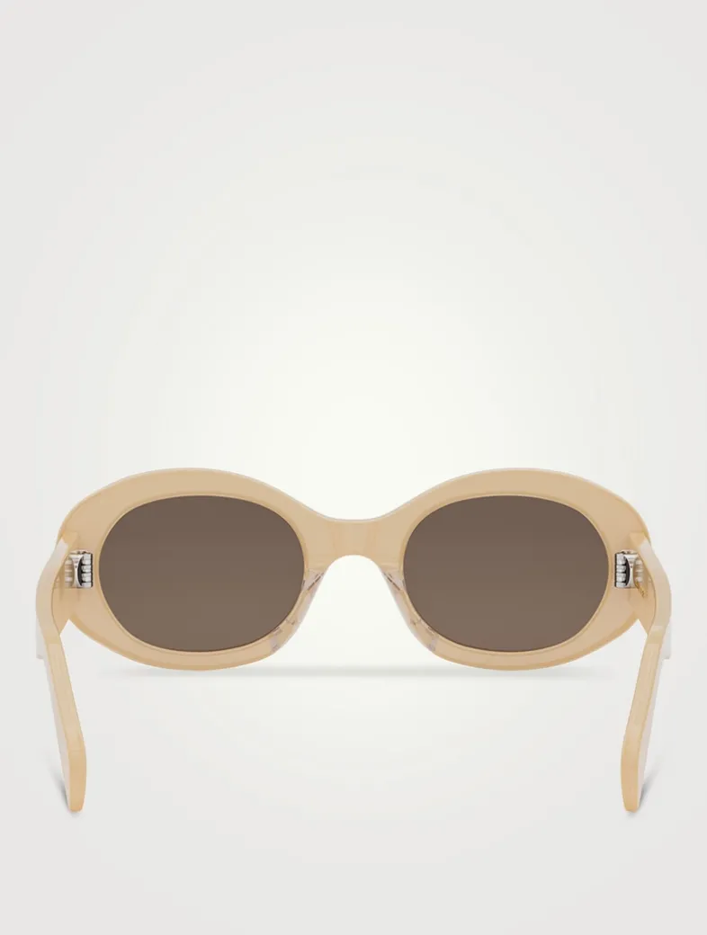 Defined by their retro-inspired, oval shape these bold acetate sunglasses are finished with the Maison’s recurring Maillon Triomphe emblem at the temples.