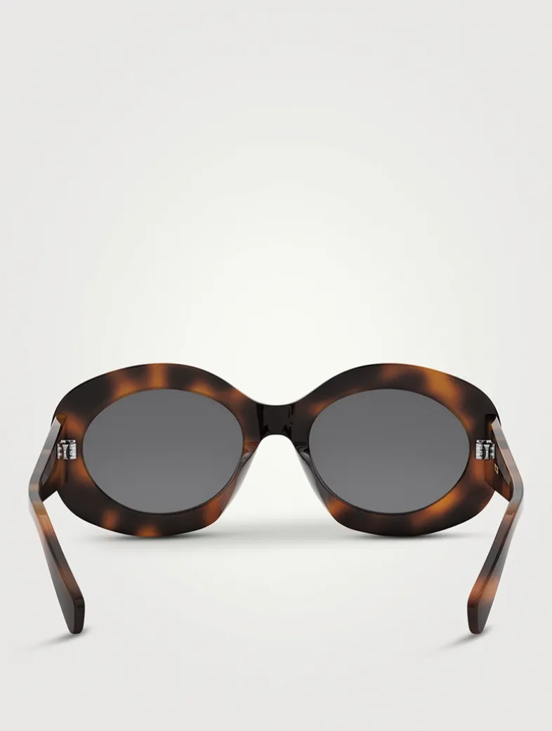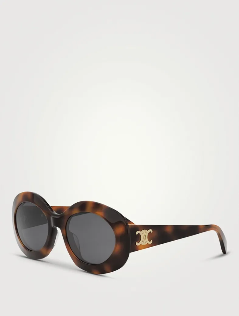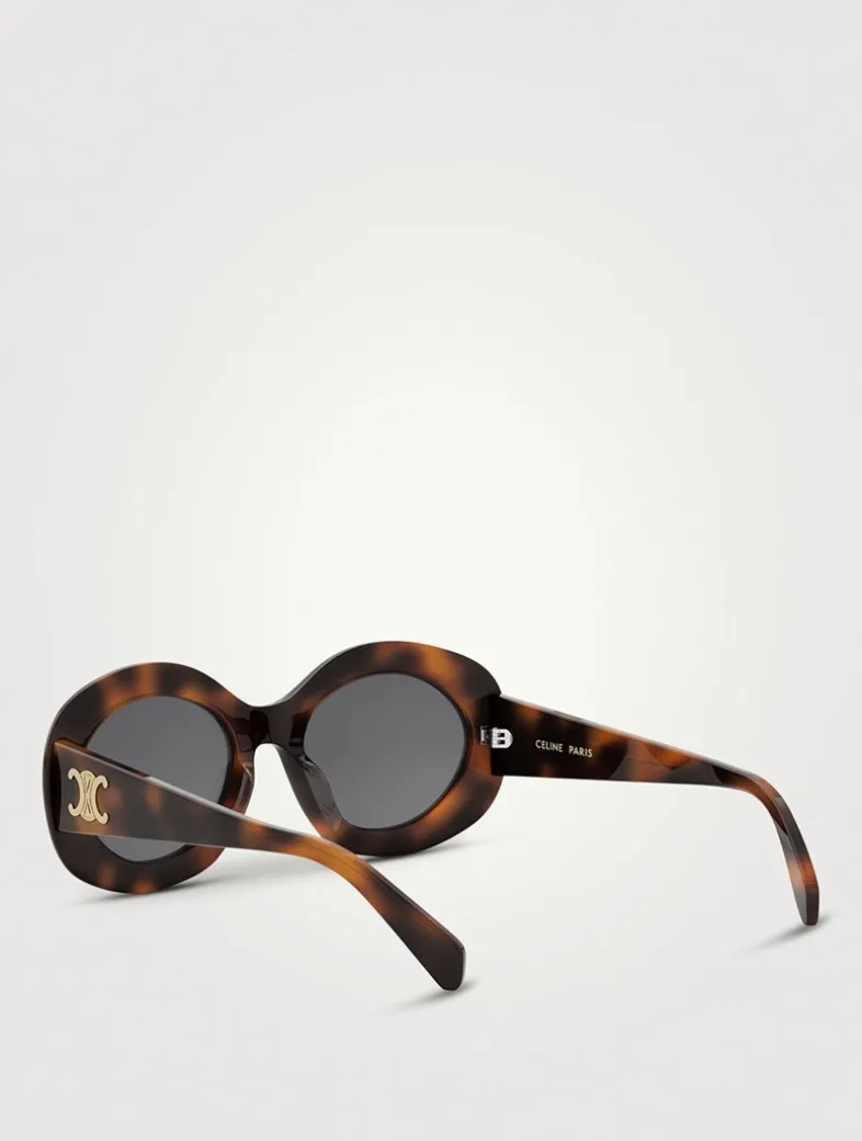 Featuring a beveled oval shape, these sunglasses are finished with Celine’s Triomphe metal signature in relief on the temples.