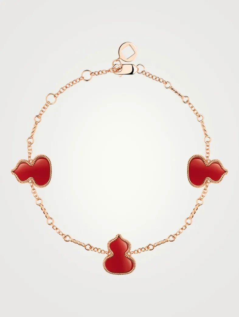 Echoing the curves of the lucky number 8, Wulu is the most powerful symbol of good fortune and positive energy in China. This delicate chain bracelet is embellished with three pear-shaped charms filled with polished agate.
