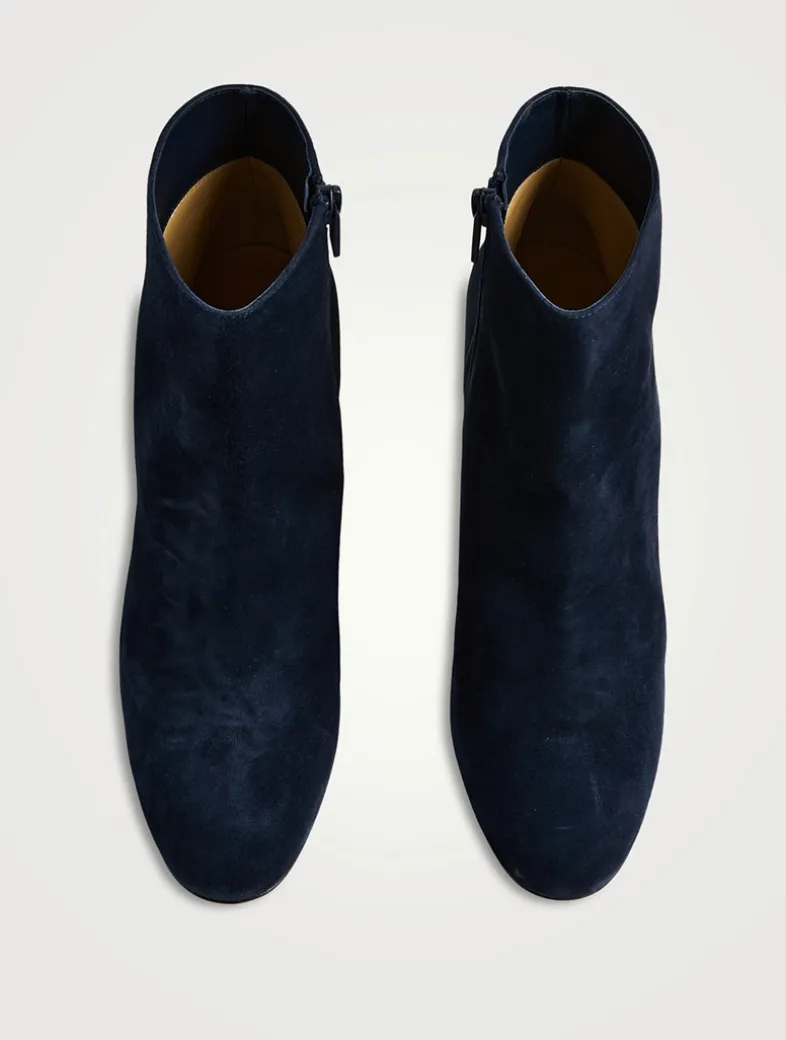 The Turela ankle boot is crafted from veau velours and features a wide almond toe, and gently curved, tapered 85mm block heel.