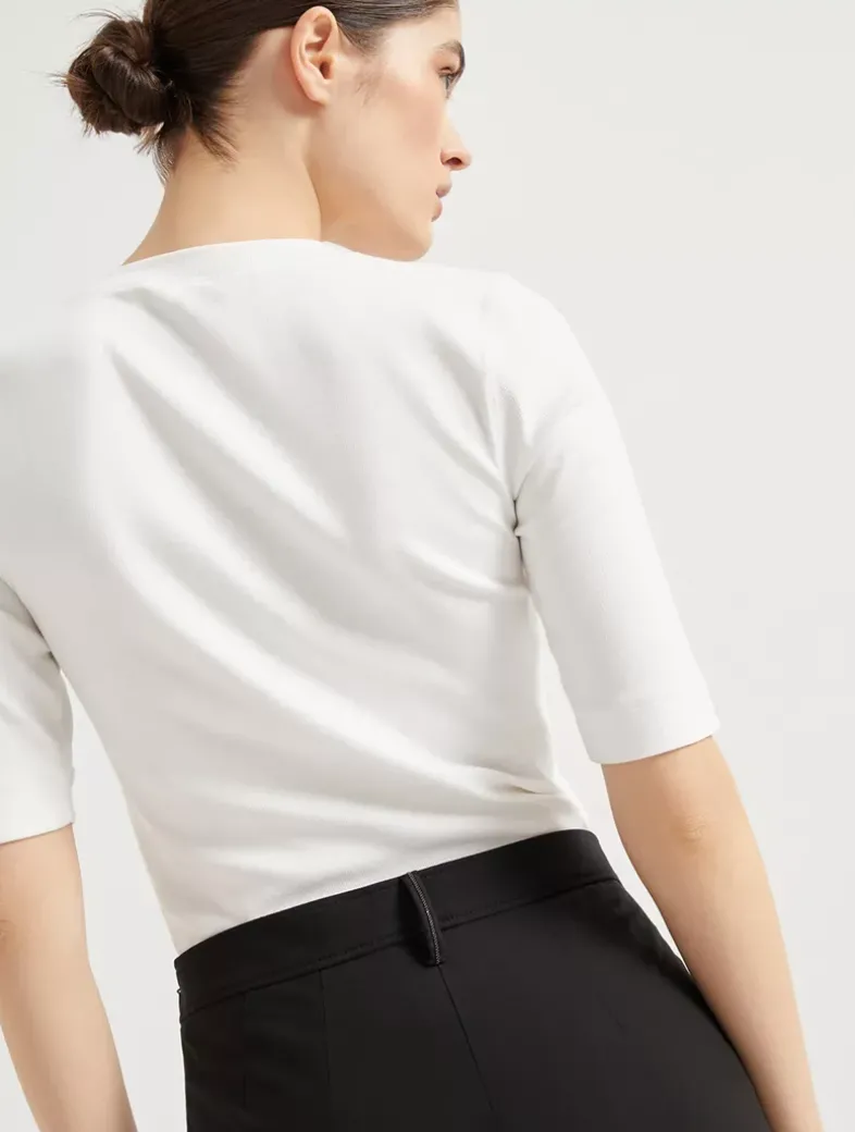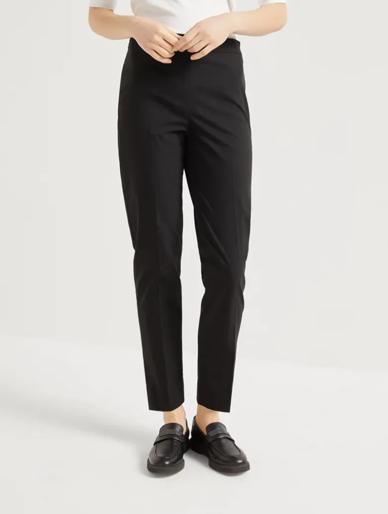 Stretch twisted cotton twill Capri pants with monili