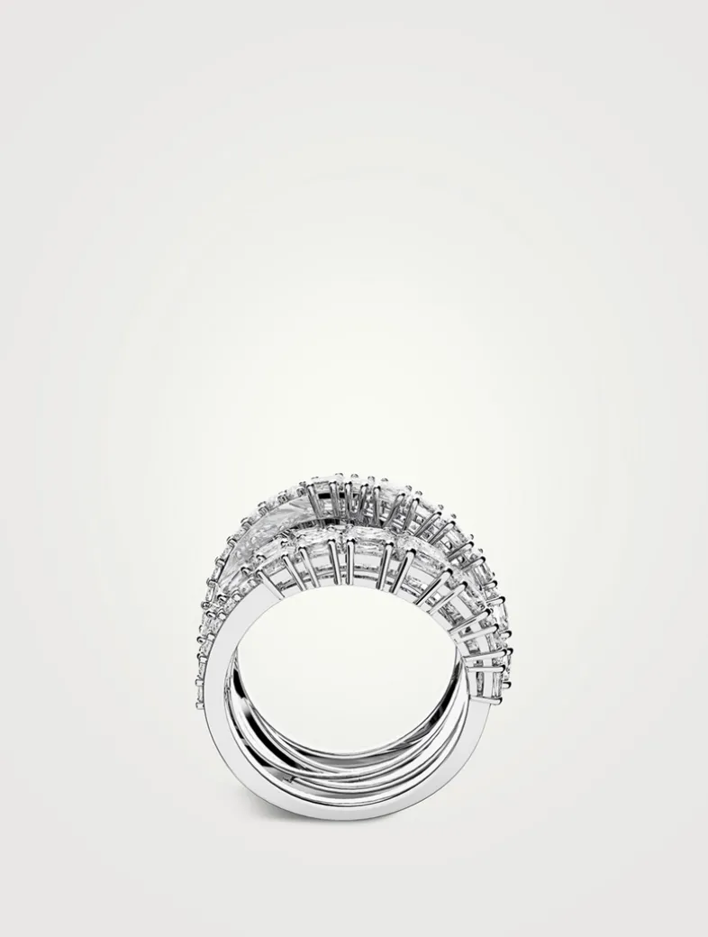 Featuring mixed cuts of cubic zirconia, this cocktail ring winds elegantly around the finger. The stacked look ensures plenty of glitter for your evening attire.