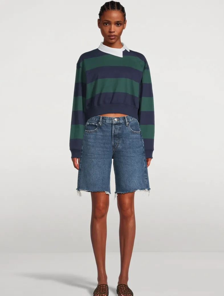 This long-sleeve cropped top is cut from GOTS- certified organic cotton jersey and printed with wide varsity-style stripes. Its contrasting twisted collar detail subverts the classic silhouette, offering a fresh take on sportswear.