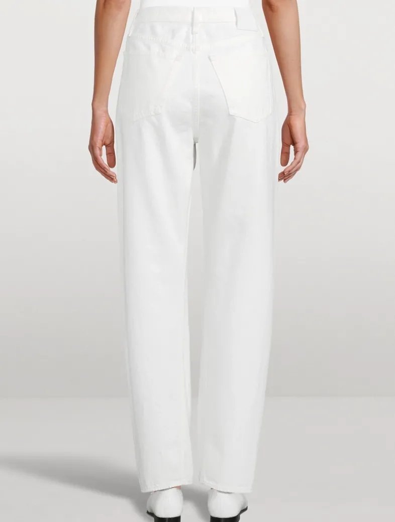 An emblematic silhouette from the TOTEME’s denim collection, these jeans have a relaxed fit defined with a mid-rise waist and floor-length, straight legs constructed with distinctive twisted side seams.
