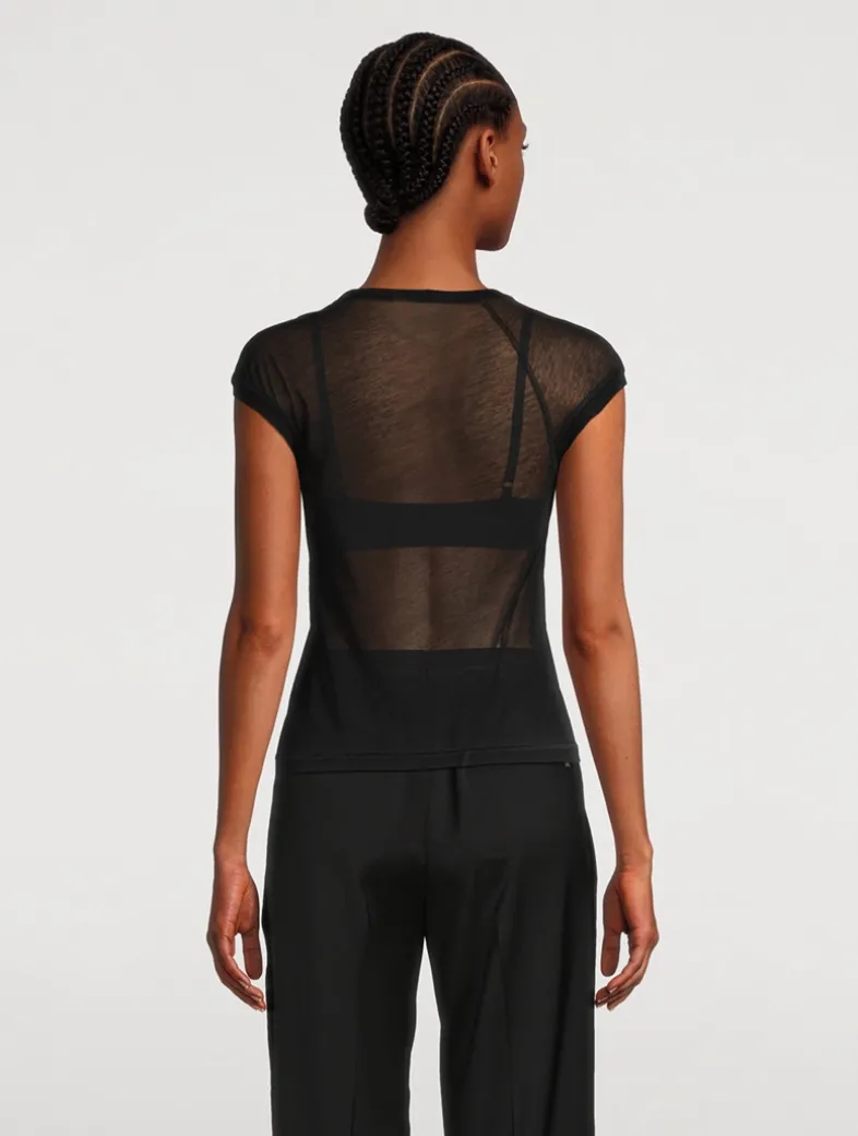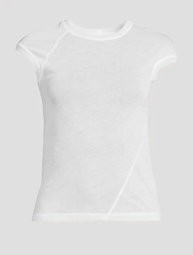 This cropped baby tee is crafted in sheer cotton knit. It has seams that wrap around the body for a close fit.