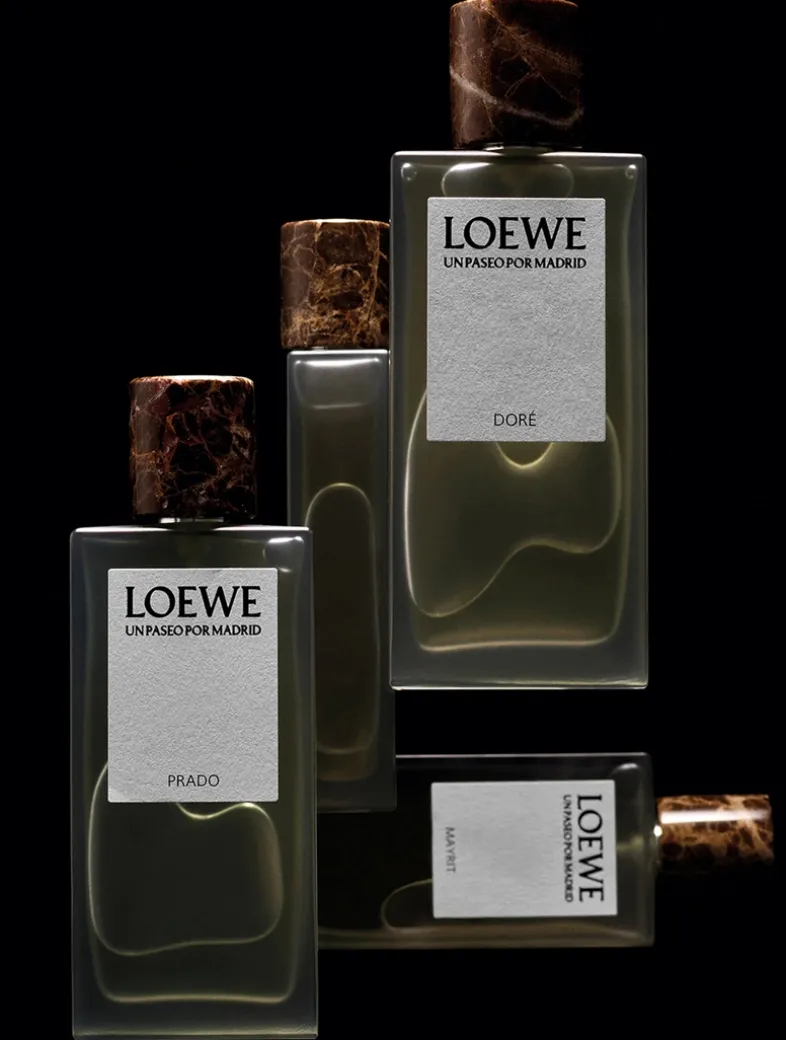 The LOEWE Un Paseo Por Madrid collection is a series of unisex fragrances that draw inspiration from the vibrant lifestyle and diverse culture of Madrid, LOEWE’s historic home. Each flask is sealed with an elegant, heavily veined marble cap and presented in a LOEWE box.