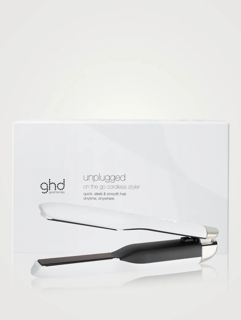 Cordless, portable, powerful… The cordless, on-the-go styler in matte white guarantees the performance of a full-sized ghd flat iron in a flight-friendly size. Featuring dual-zone technology for premium performance, the ghd unplugged styler is equipped with two next-generation heat sensors, one across each styling plate for all your on-the-go styling needs. Plus, no-hassle charging…in the car, with your laptop or on a plane. (yes – it’s safe to take in your carry-on or checked baggage). No more guessing the correct styling temperature. All ghd stylers are pre-set to the safer-for-hair temperature of 365°F: the optimum temperature for styling on every hair type.