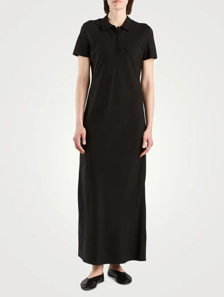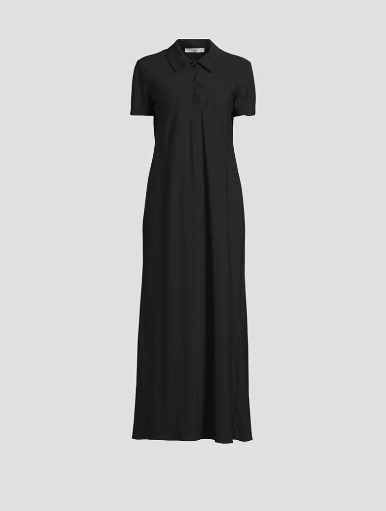 Made from a cotton and silk-blend, this short-sleeve maxi dress is detailed with a classic pointed collar, and three-buttoned placket.
