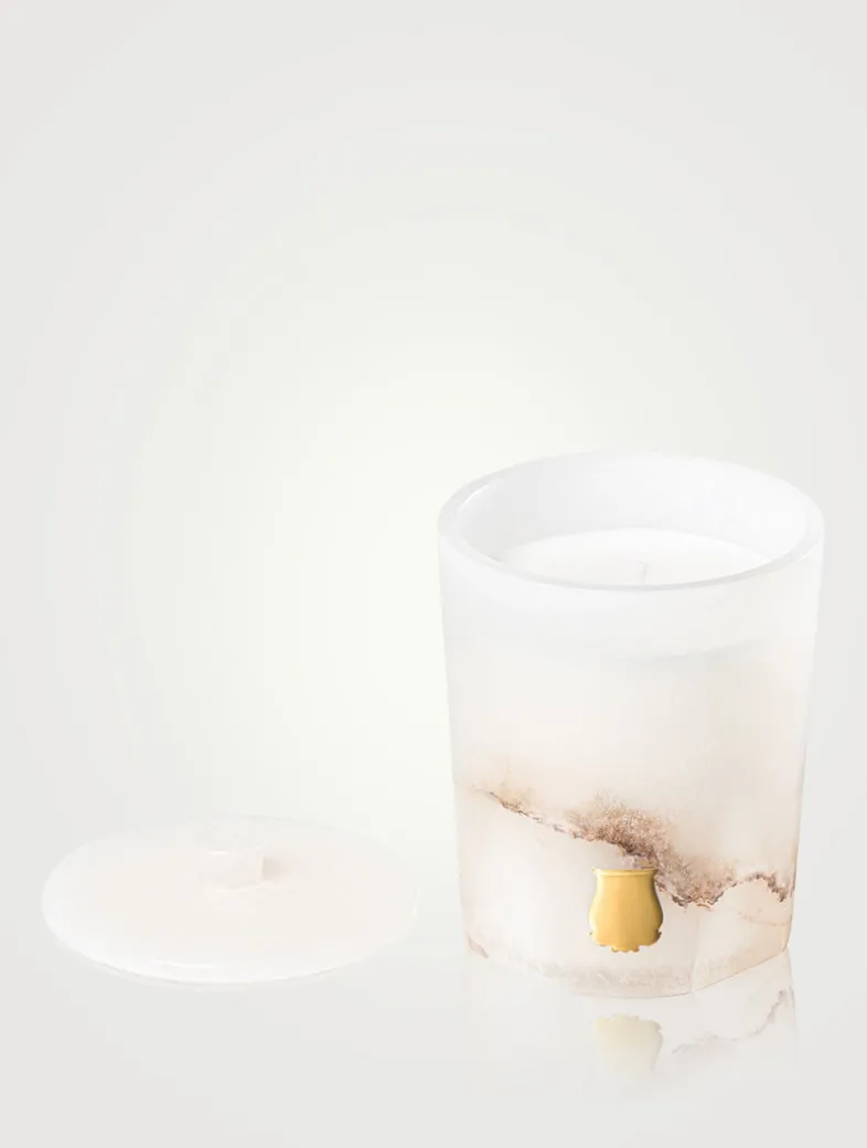 A fruity chypre accord, the perfume builds on a floral facet with notes of rose, freesia, and jasmine further softened by balmy, musky base notes. Greener notes of moss and mandarin give the perfume a luminous and crystallin balance. Fresh and floral, the scent mirrors the transparency of the alabaster container that lights up, composing a warm halo: Vesta suggests a luminous presence.
