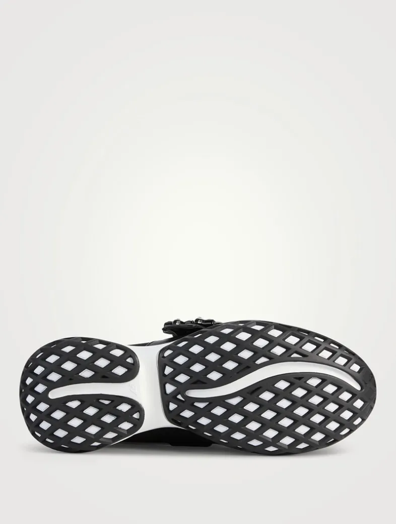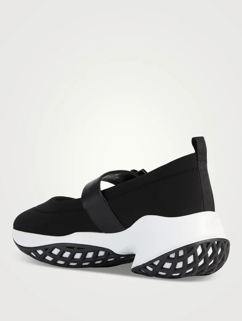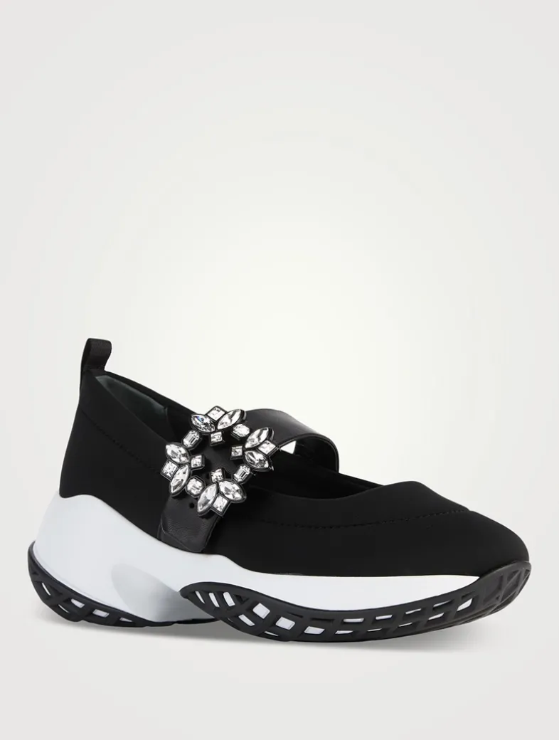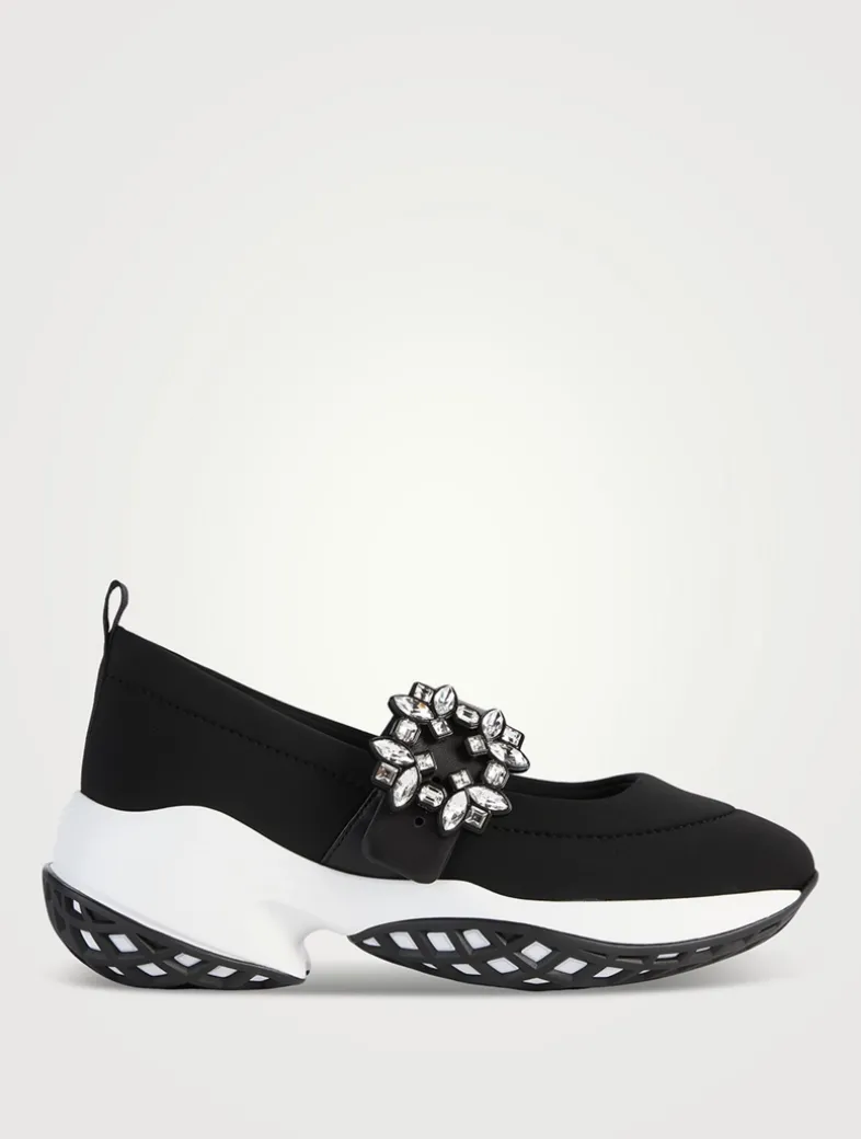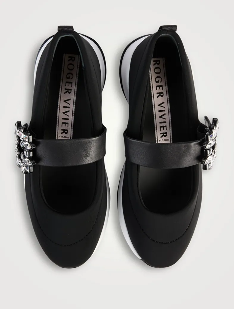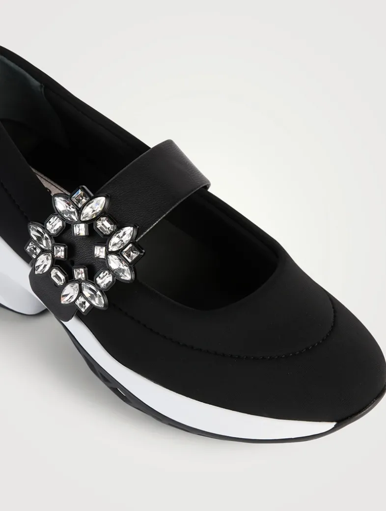 This Viv’ Run ballerina is crafted in technical scuba fabric, with a leather strap and crystal-embellished buckle. It adds a signature Vivier touch to a sporty look.