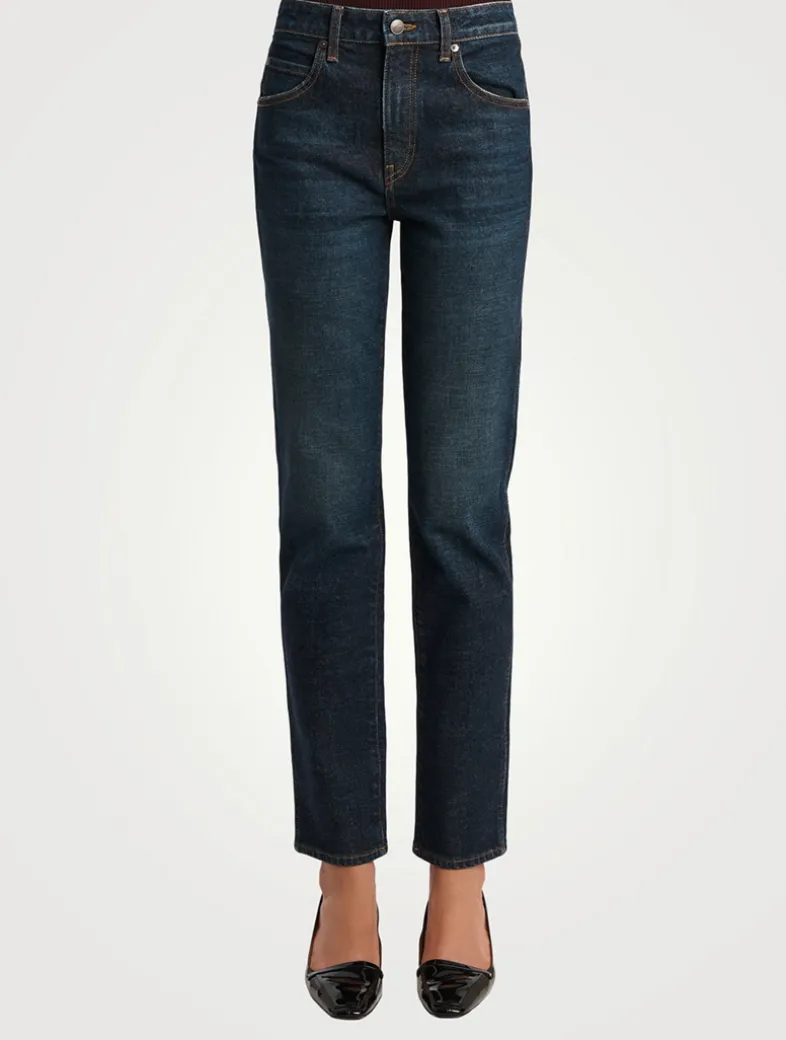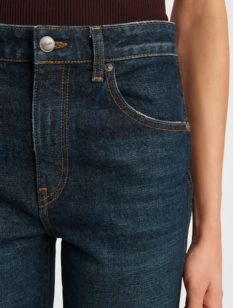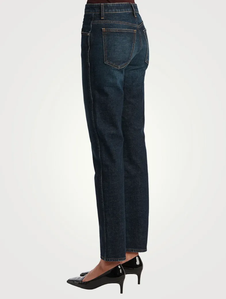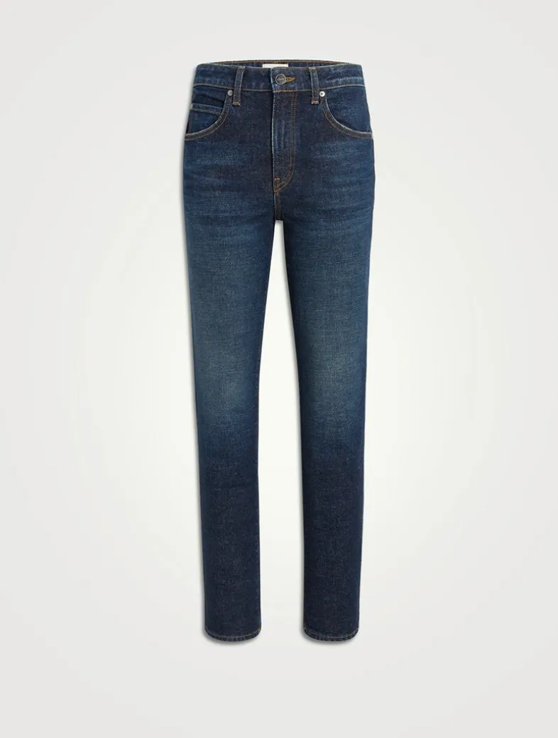 With a slim leg designed to hit at the ankle, this mid-rise style reimagines a cigarette pant in classic five-pocket denim with a touch of stretch for ease. Each hand-finished pair has a button of antiqued nickel.