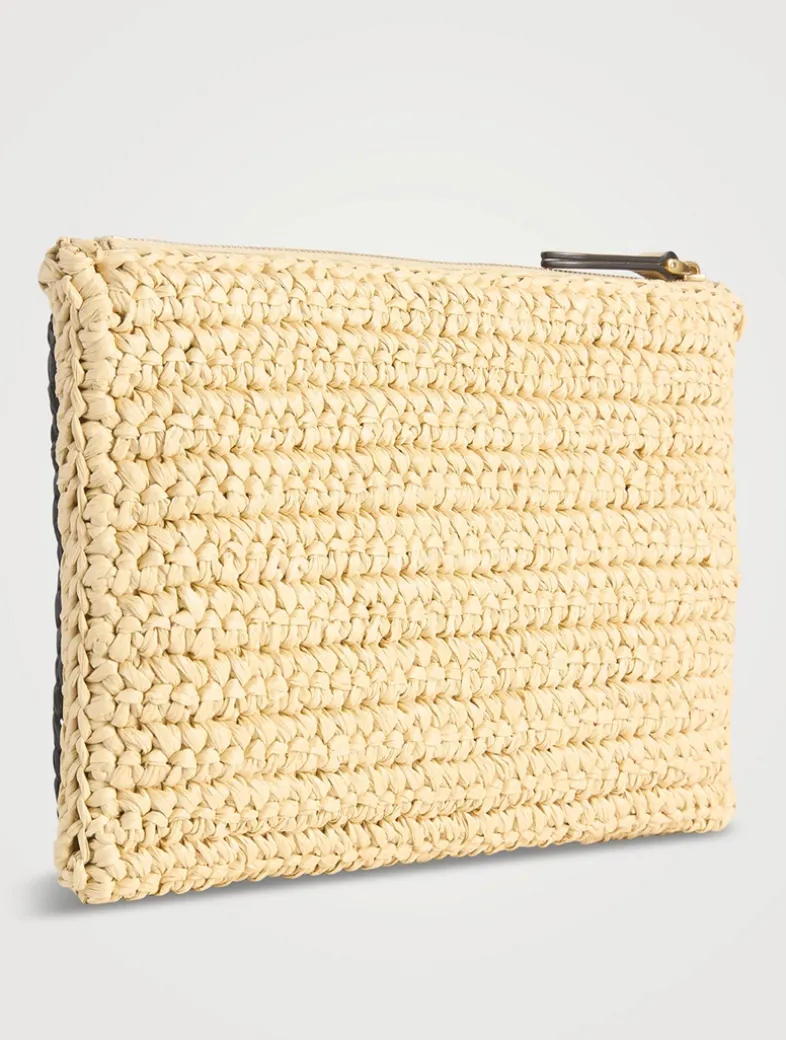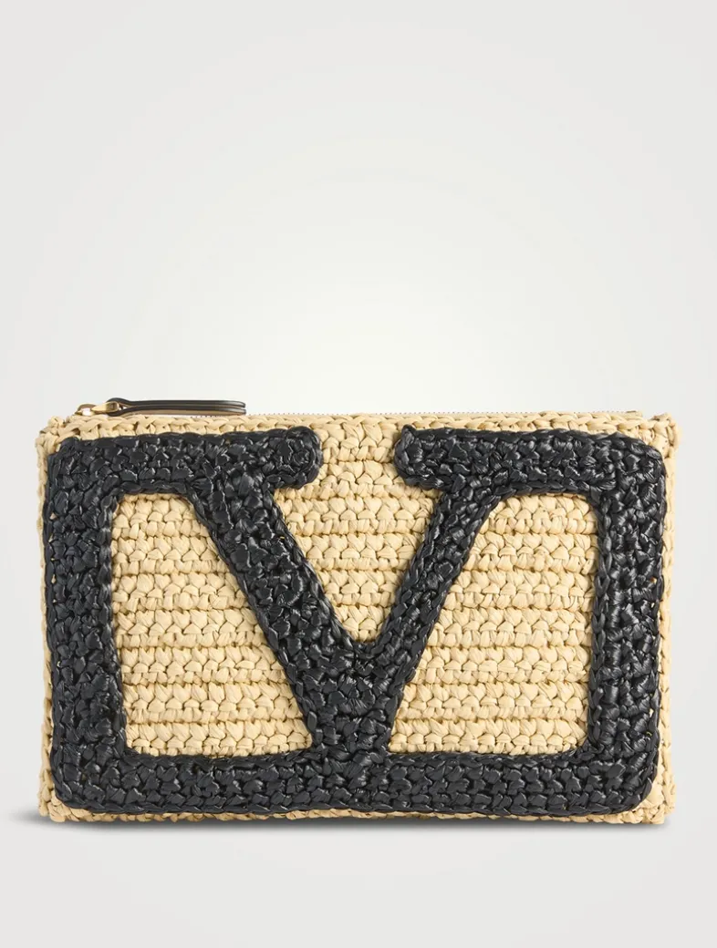 This petit pouch is crafted in woven synthetic raffia with contrasting maxi VLogo Signature at the front. Three card slots at the interior.