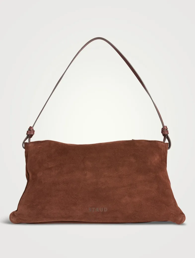 A simple slouchy shoulder bag with knotted strap ends, the Vivi features an interior pocket and zipper closure. Crafted from plush suede, it is roomy enough for all your daily essentials.