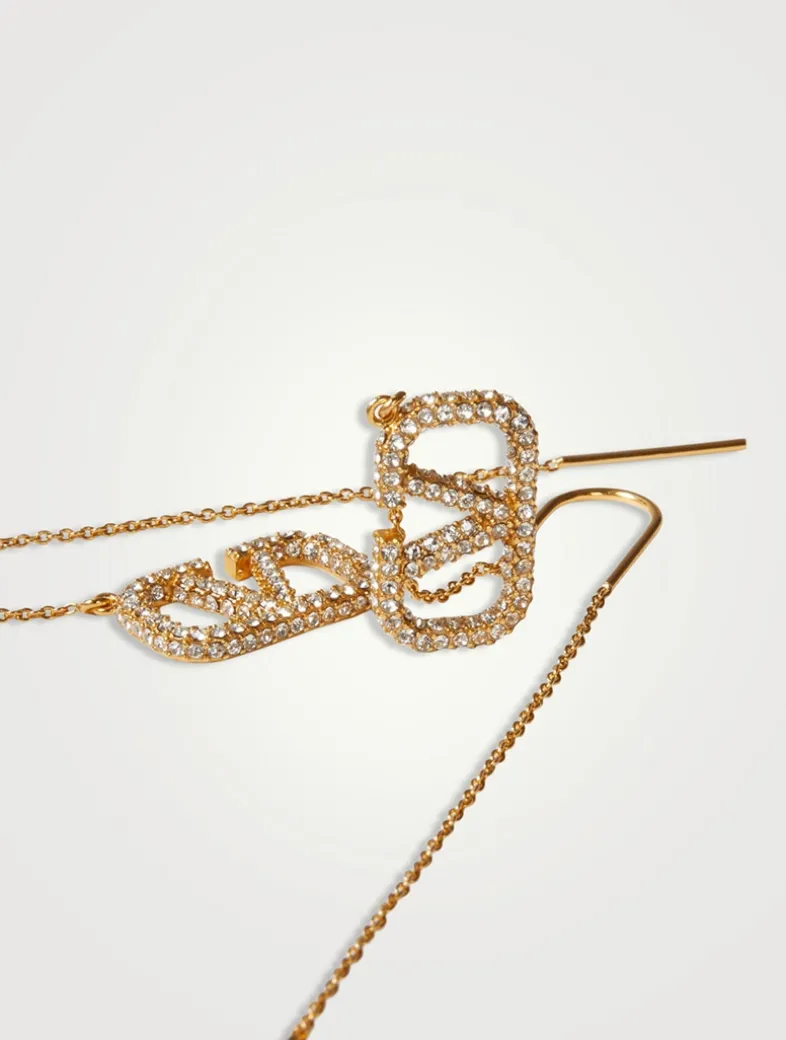 These delicate threader chain earrings are designed with hanging VLogo accents embellished with sparkling crystals.